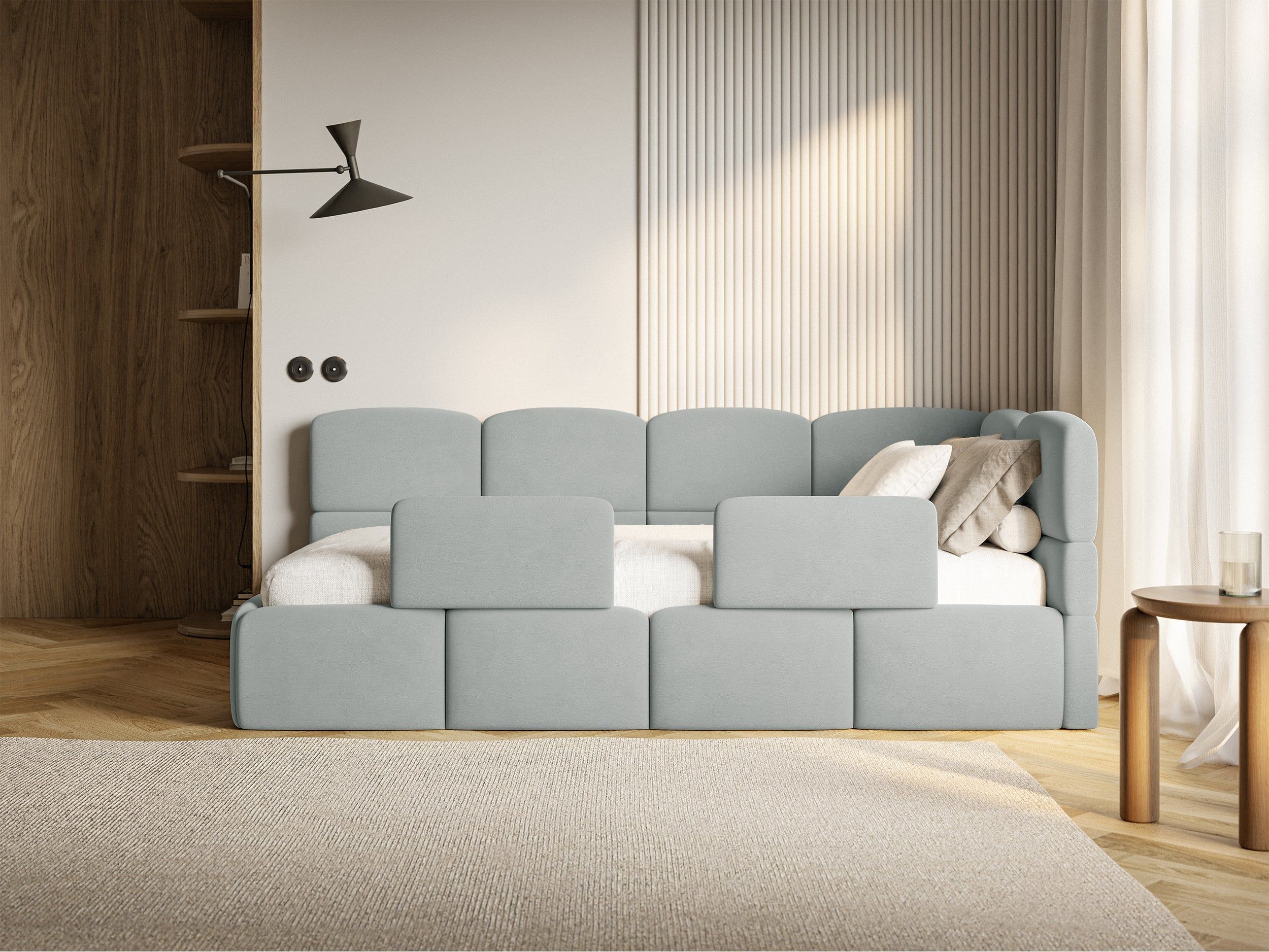 Selsey Cloudy - Kinderbett 120x200, Kopfteil rechts, Matratze & Bettkasten, Samt Grau