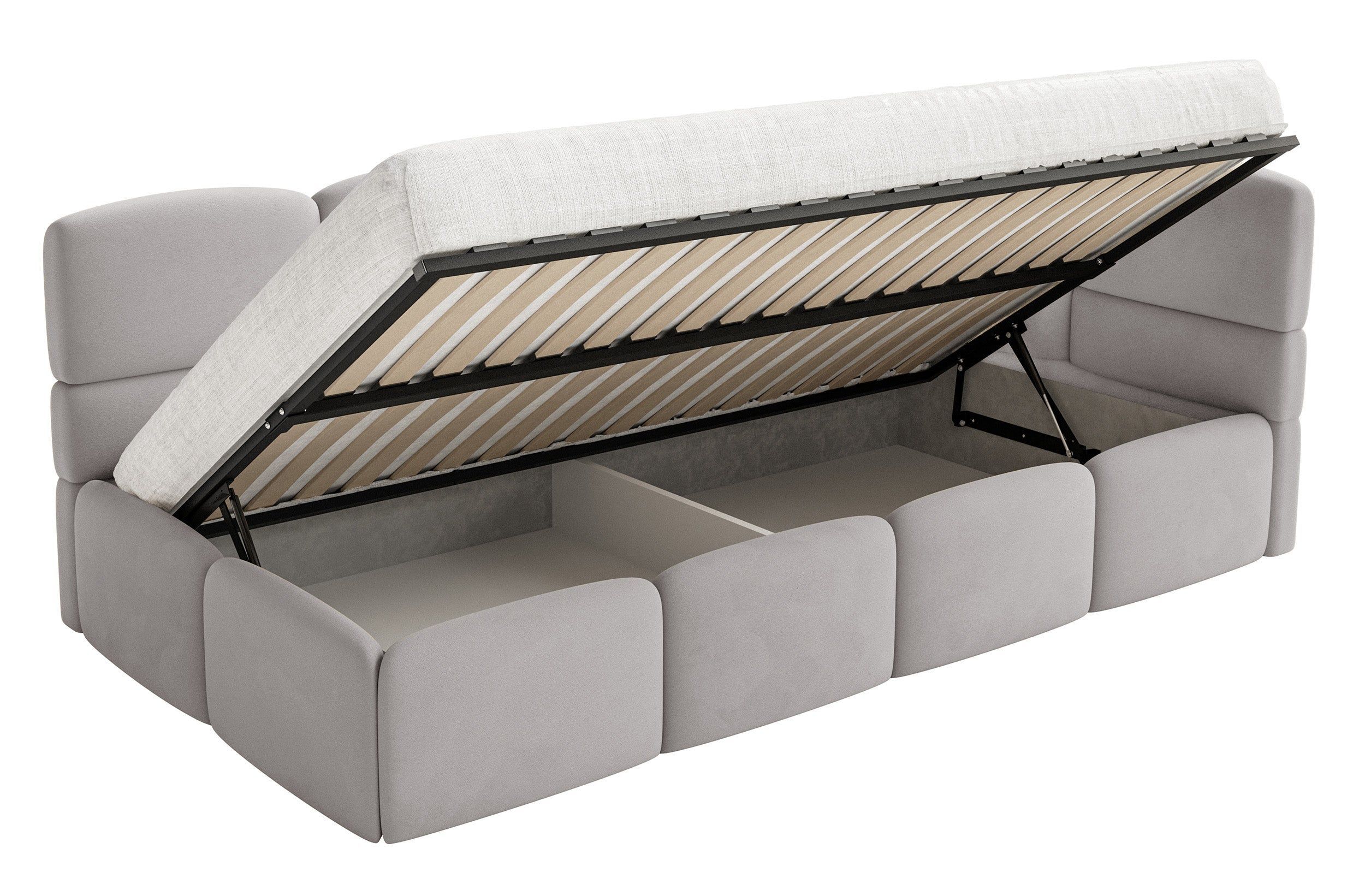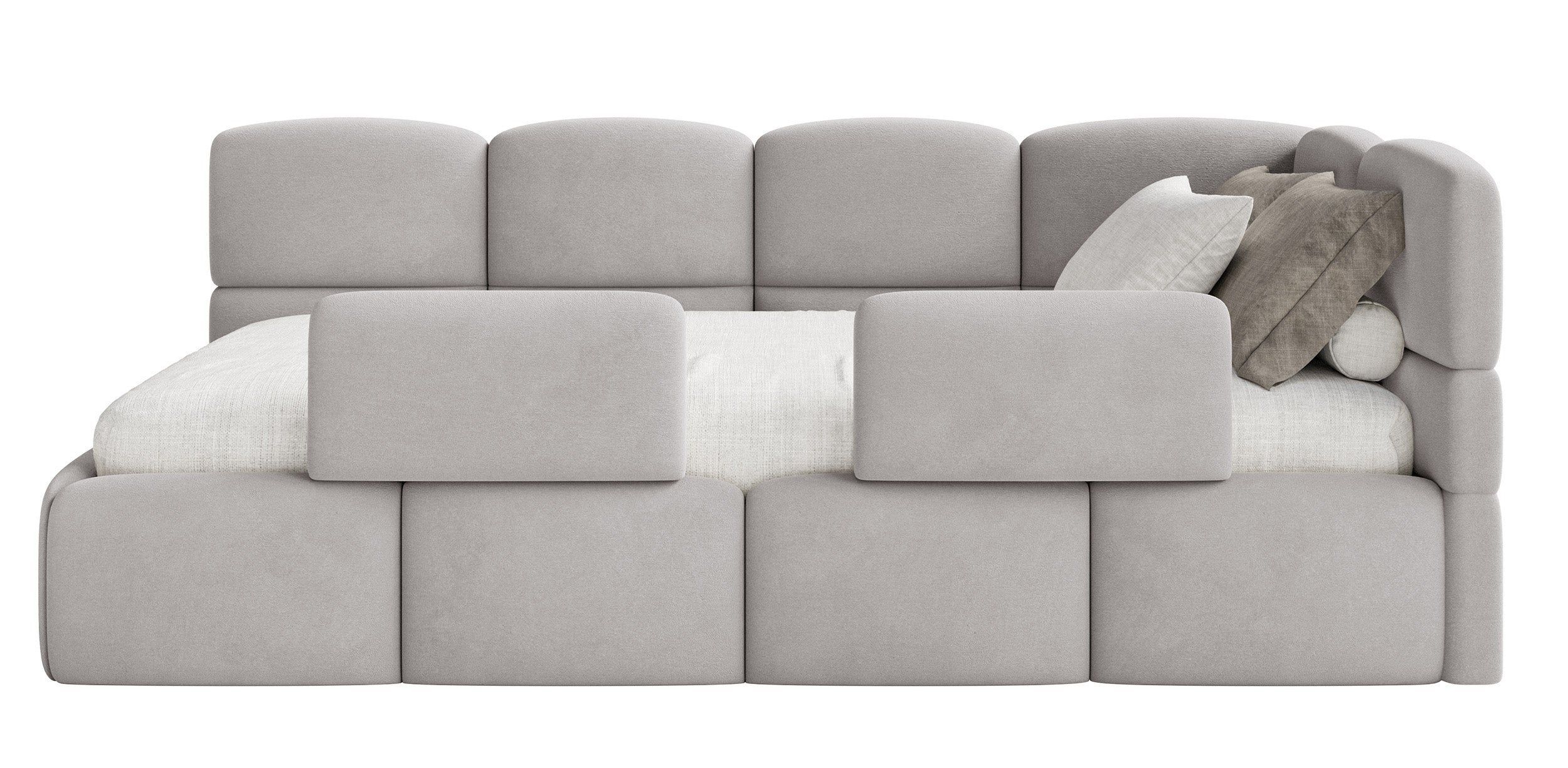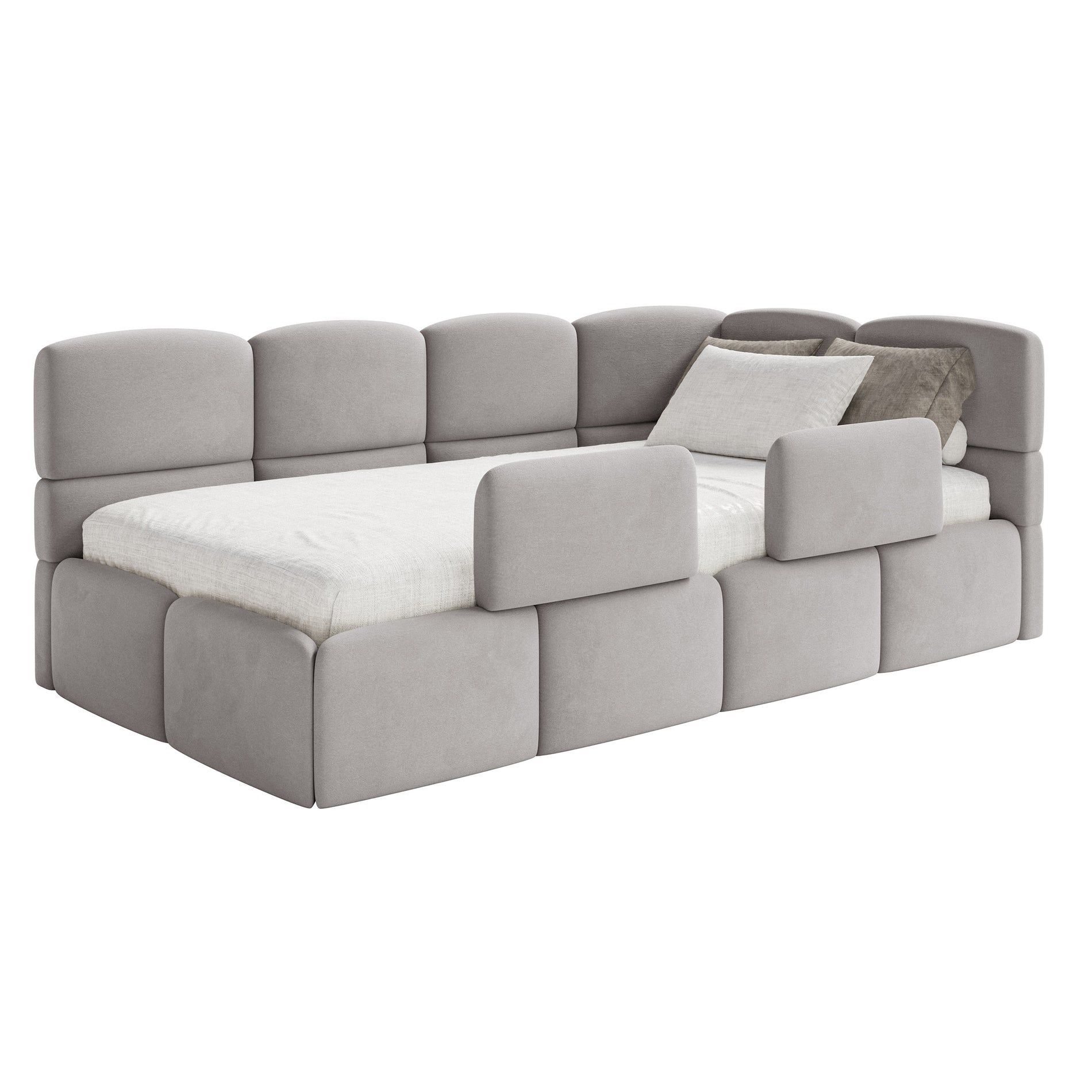 Selsey Cloudy - Kinderbett 120x200, Kopfteil rechts, Matratze & Bettkasten, Samt Hell