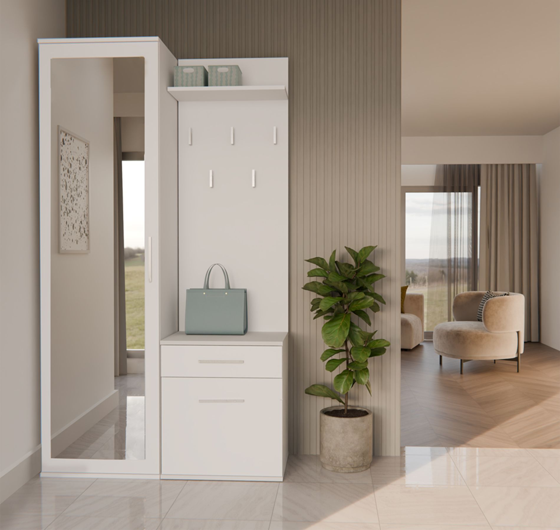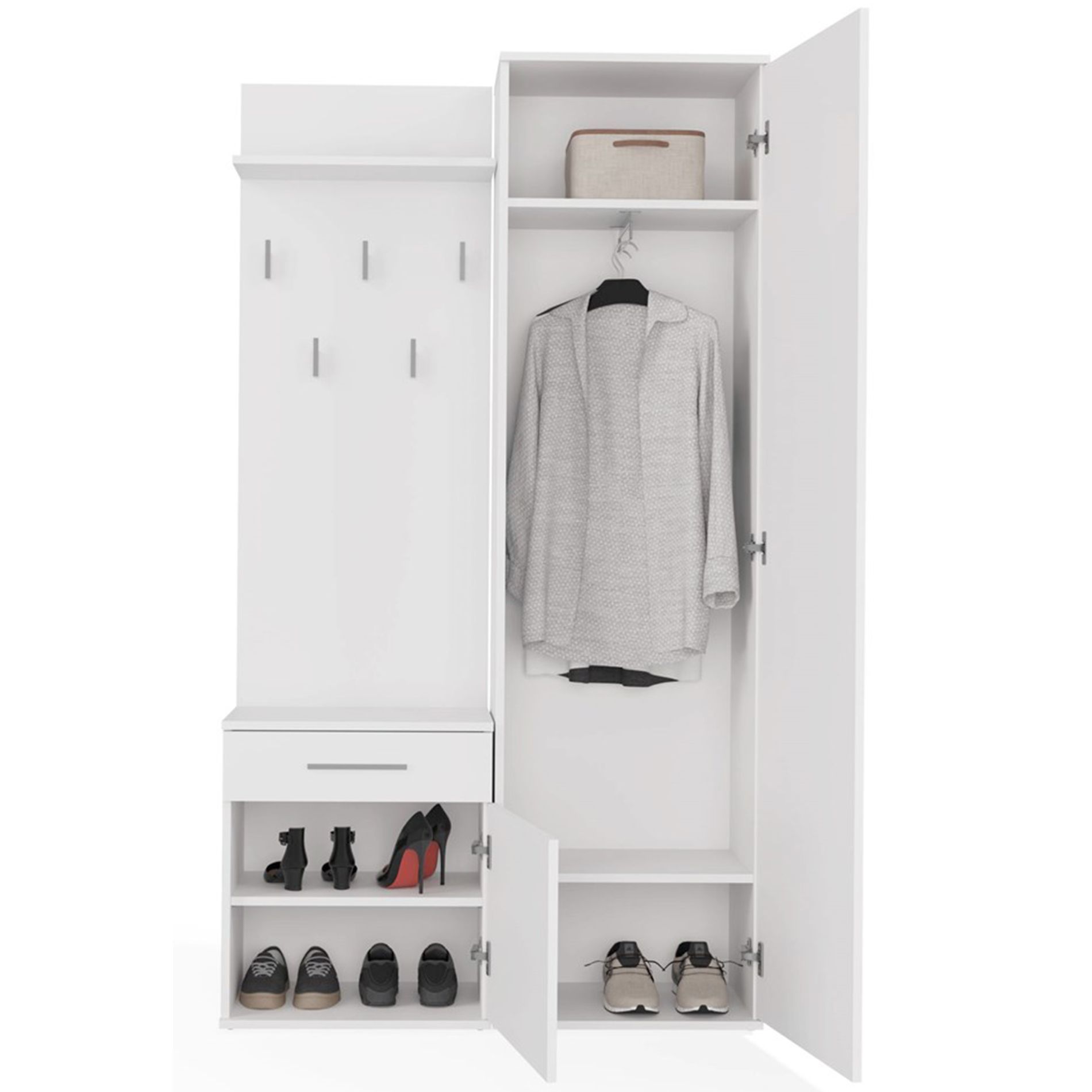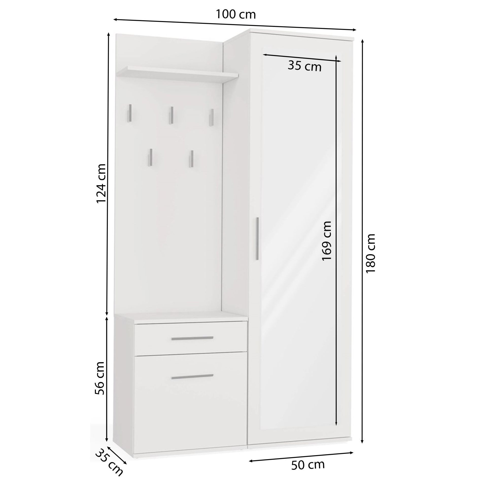 Selsey Duvio - Flurgarderobe mit Schrank und Spiegel, Weiß, 100 cm