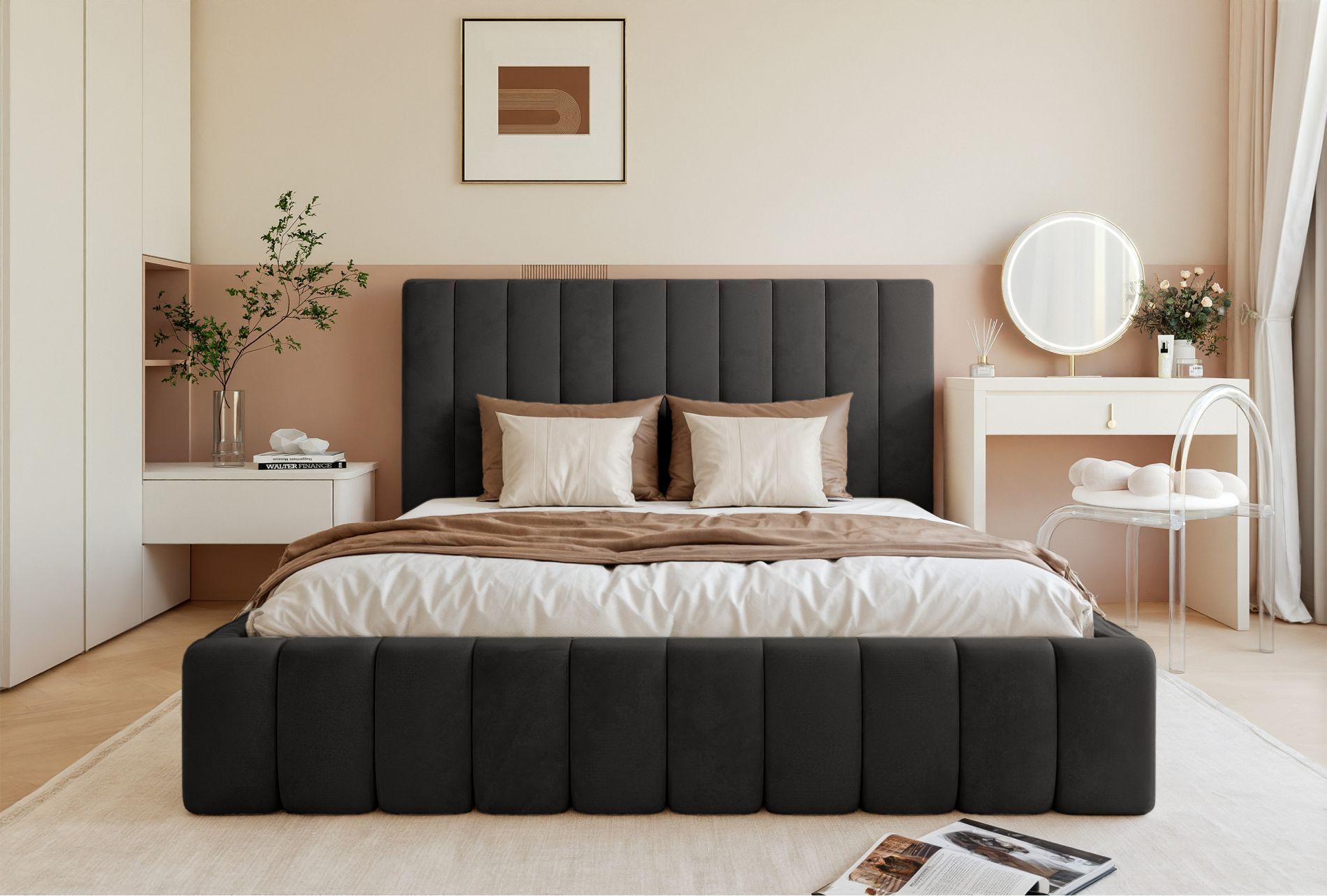 Selsey Fiarro - Polsterbett 180x200 mit Bettkasten, Velours, dunkelgrau