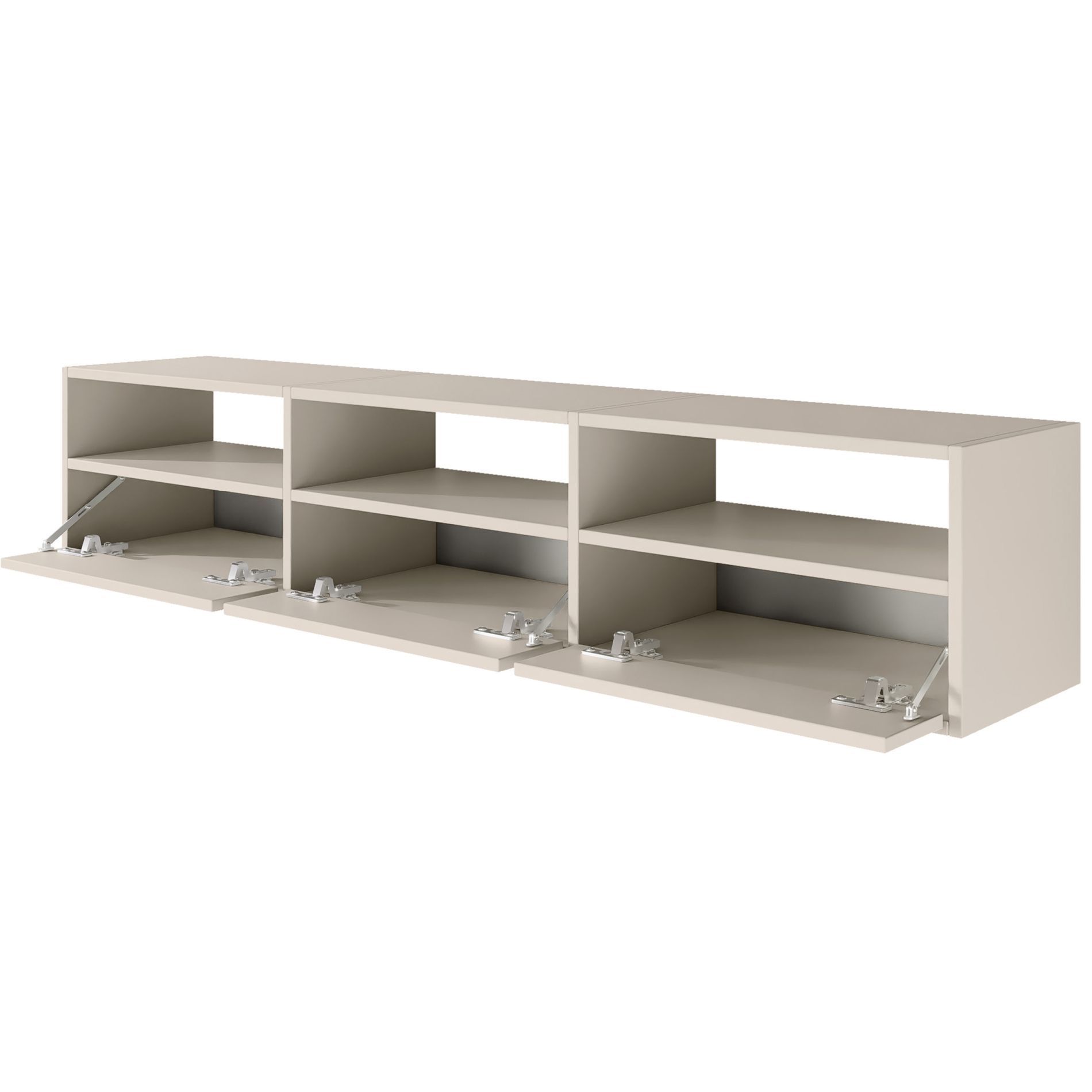 Selsey Framme - hängendes TV-Board mit drei Klappen und offenen Ablagen, Kaschmirgrau
