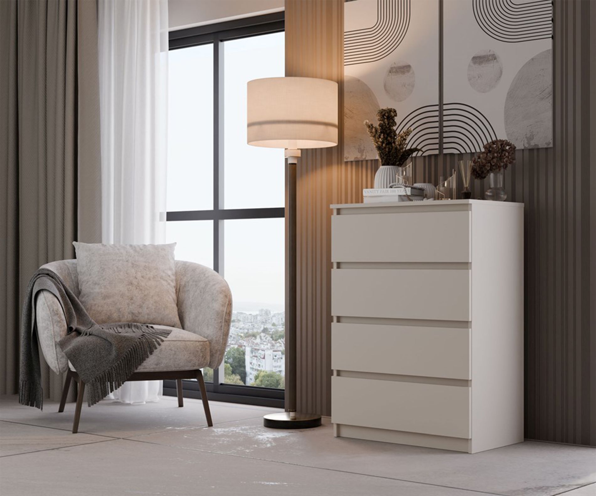 Selsey Malwa - Kommode mit vier Schubladen, greige, 70 cm