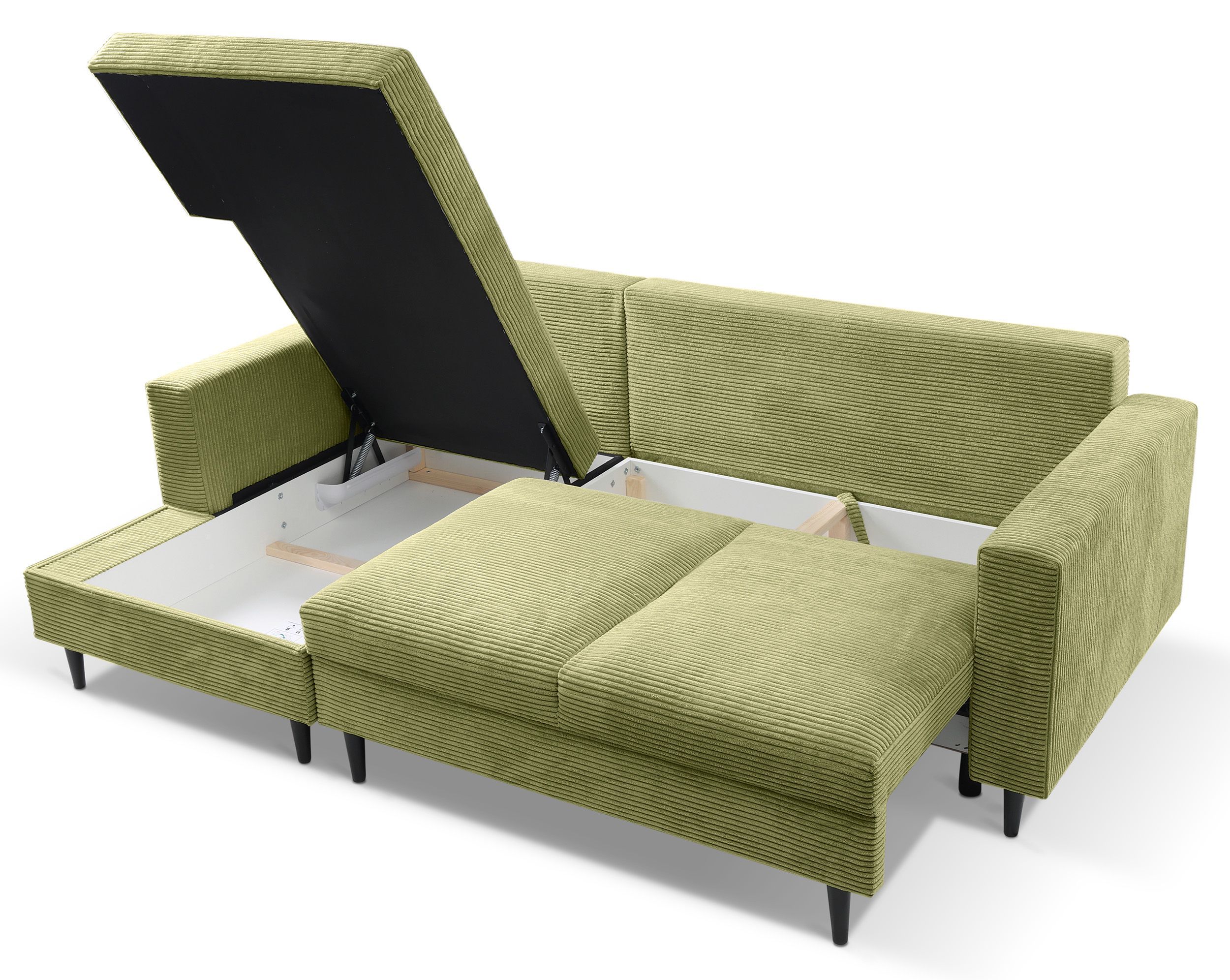 Selsey Nalika - Ecksofa mit Schlaffunktion, pistaziengrün, linksseitig
