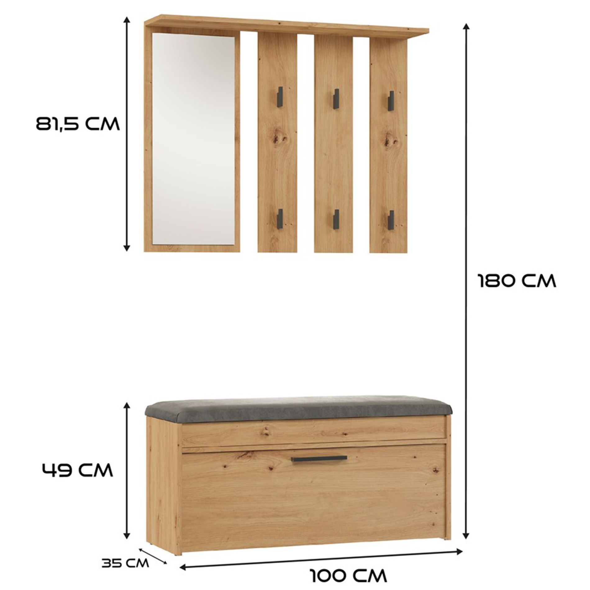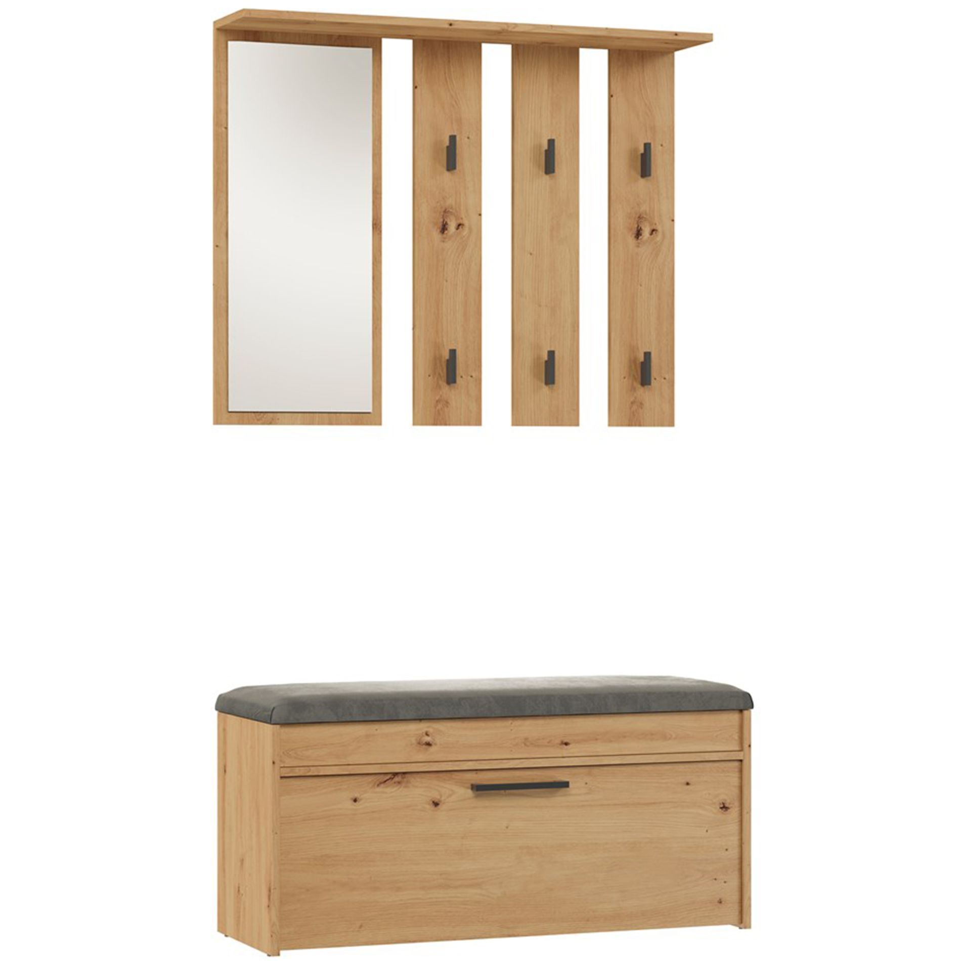 Selsey Parmani - Flurmöbel-Set mit Sitzbank und Spiegel, Artisan Eiche