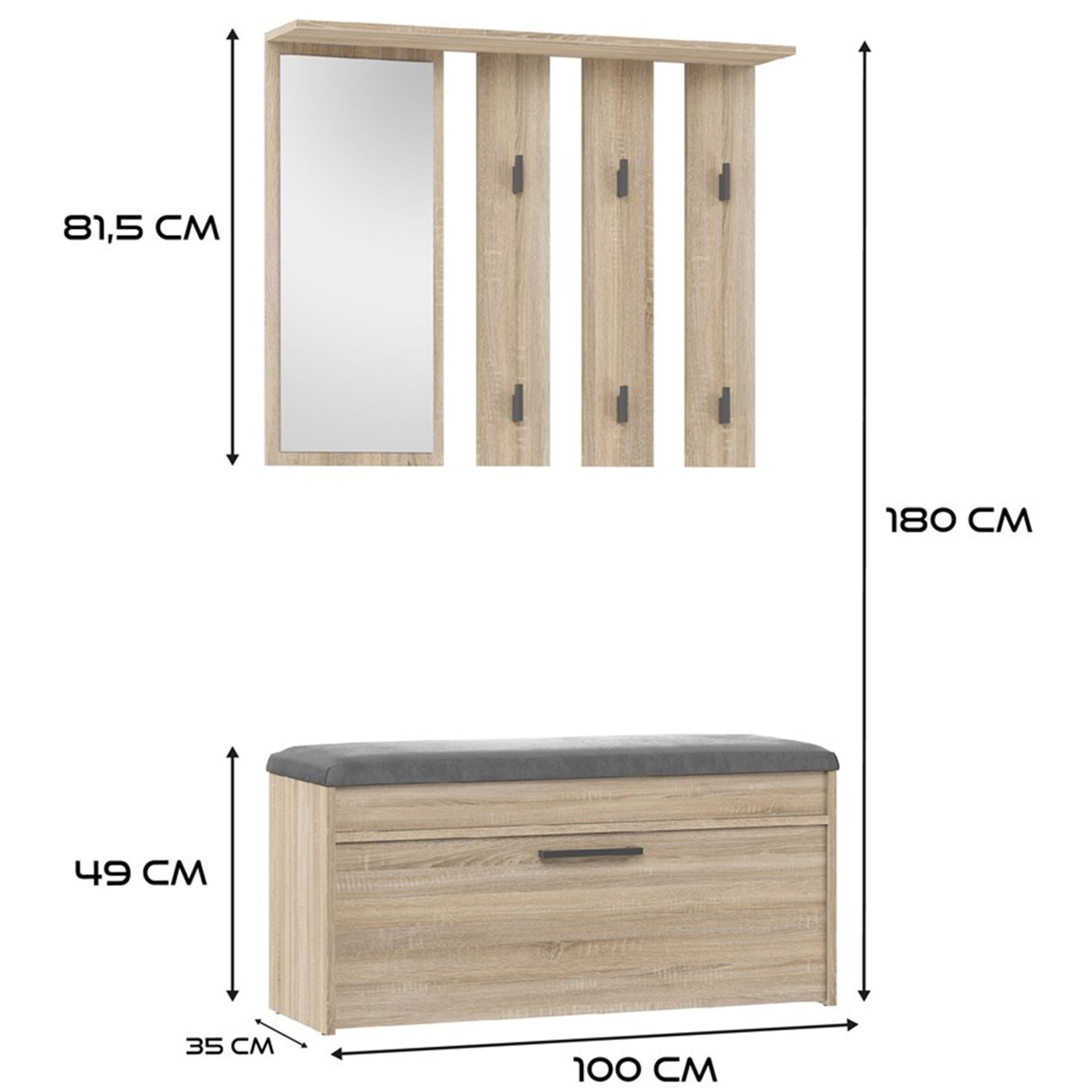 Selsey Parmani - Flurmöbel-Set mit Sitzbank und Spiegel, Sonoma Eiche