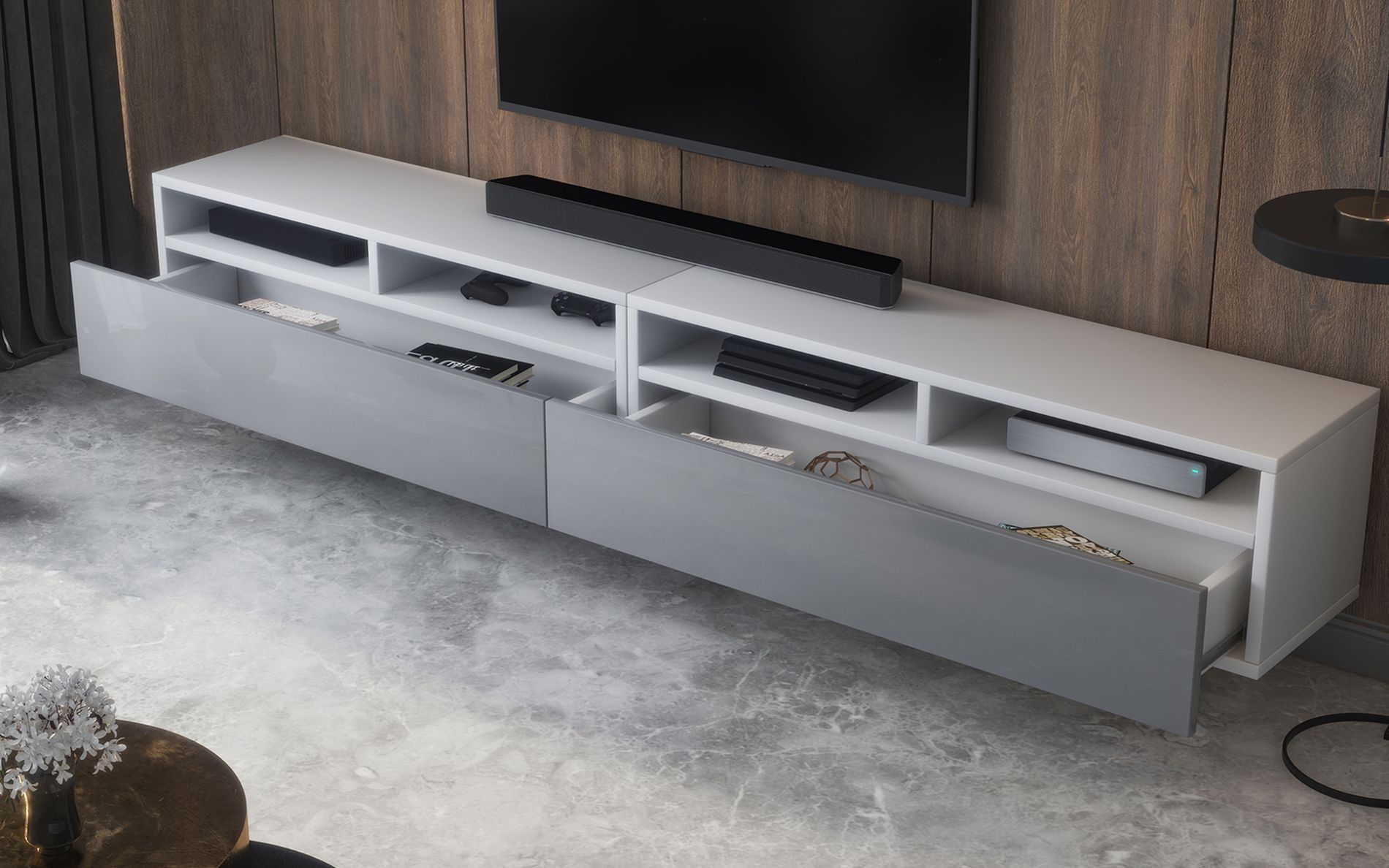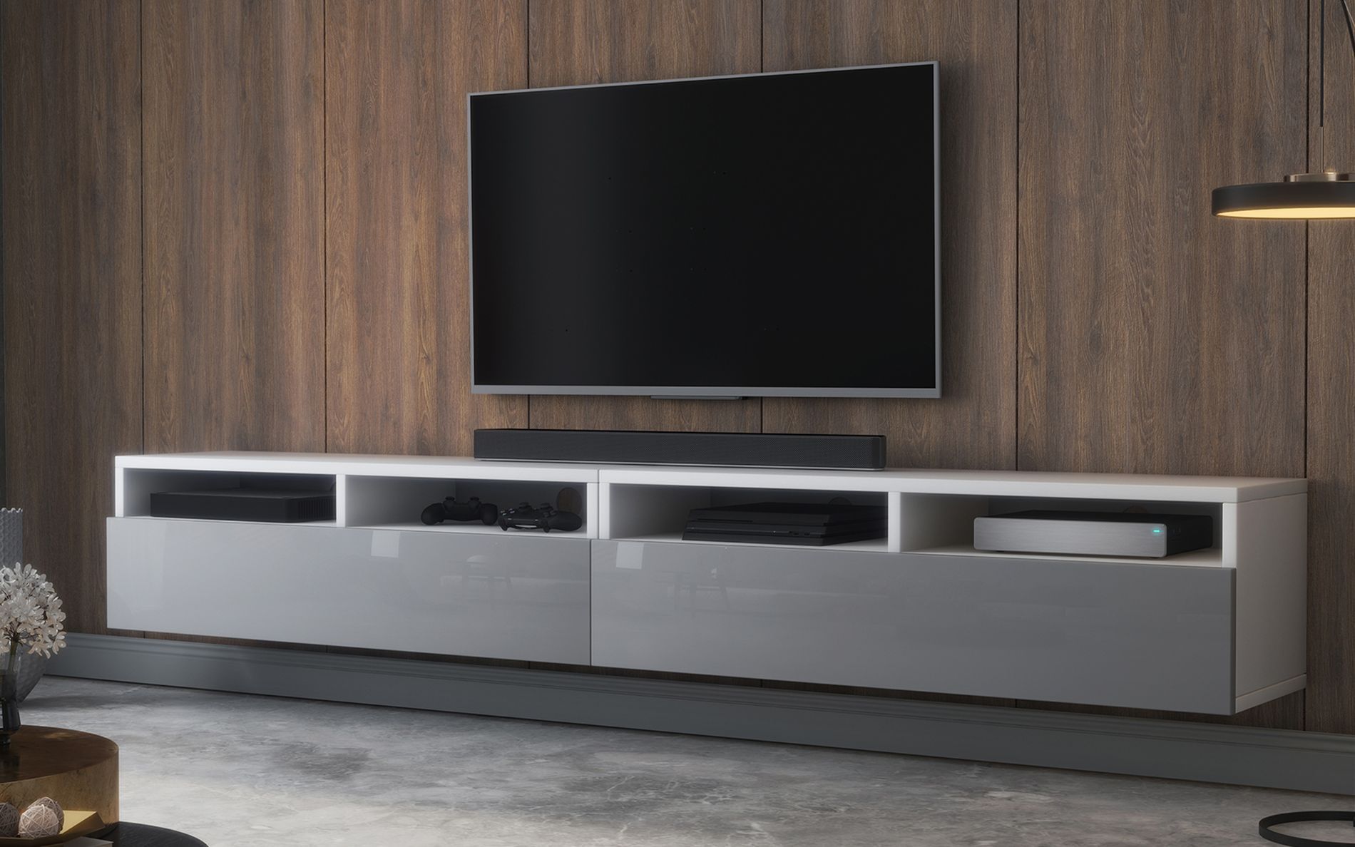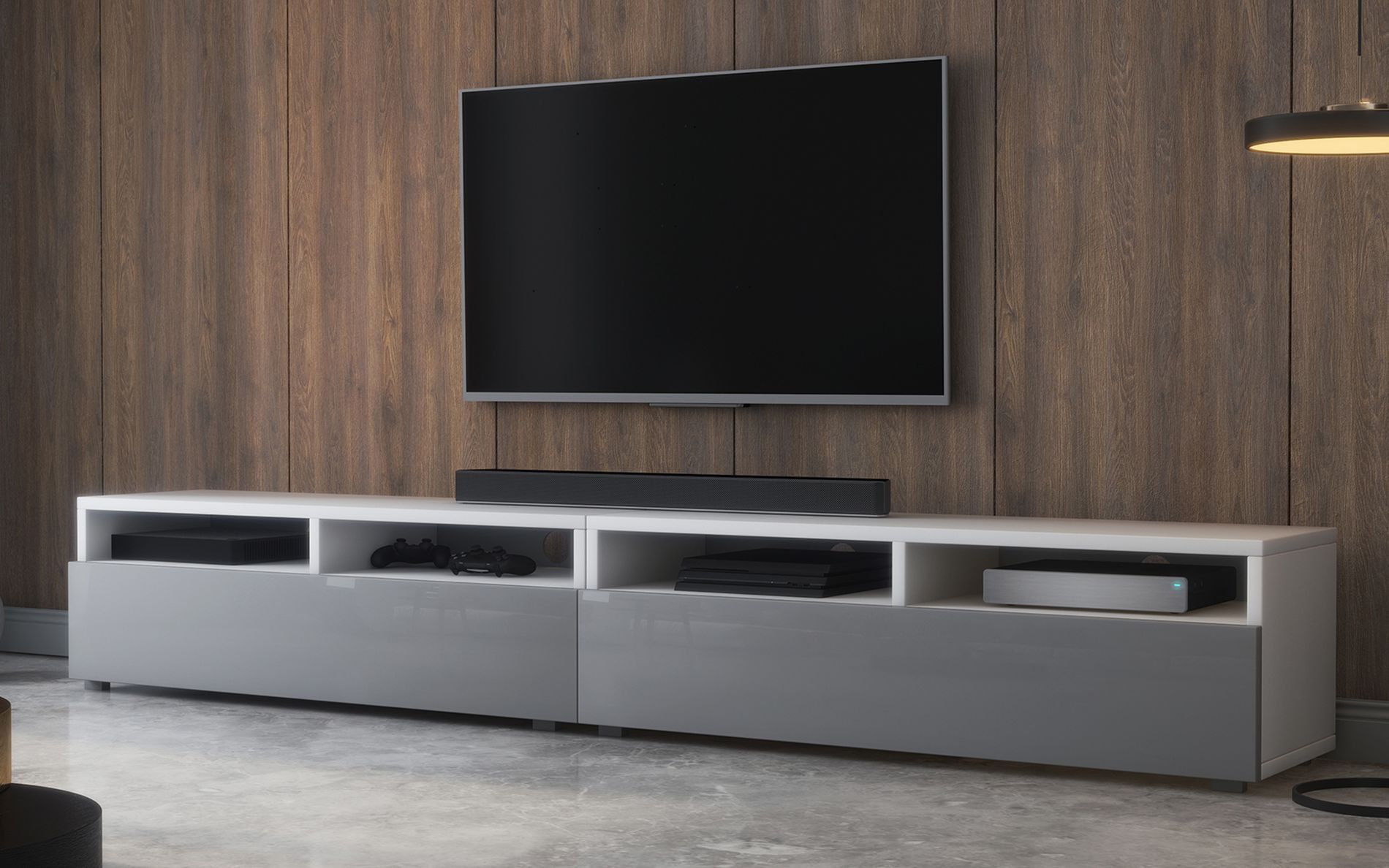 Selsey Rednaw - TV-Schrank mit zwei Schubladen, Mattweiß / Hochglanz Grau, 200 cm