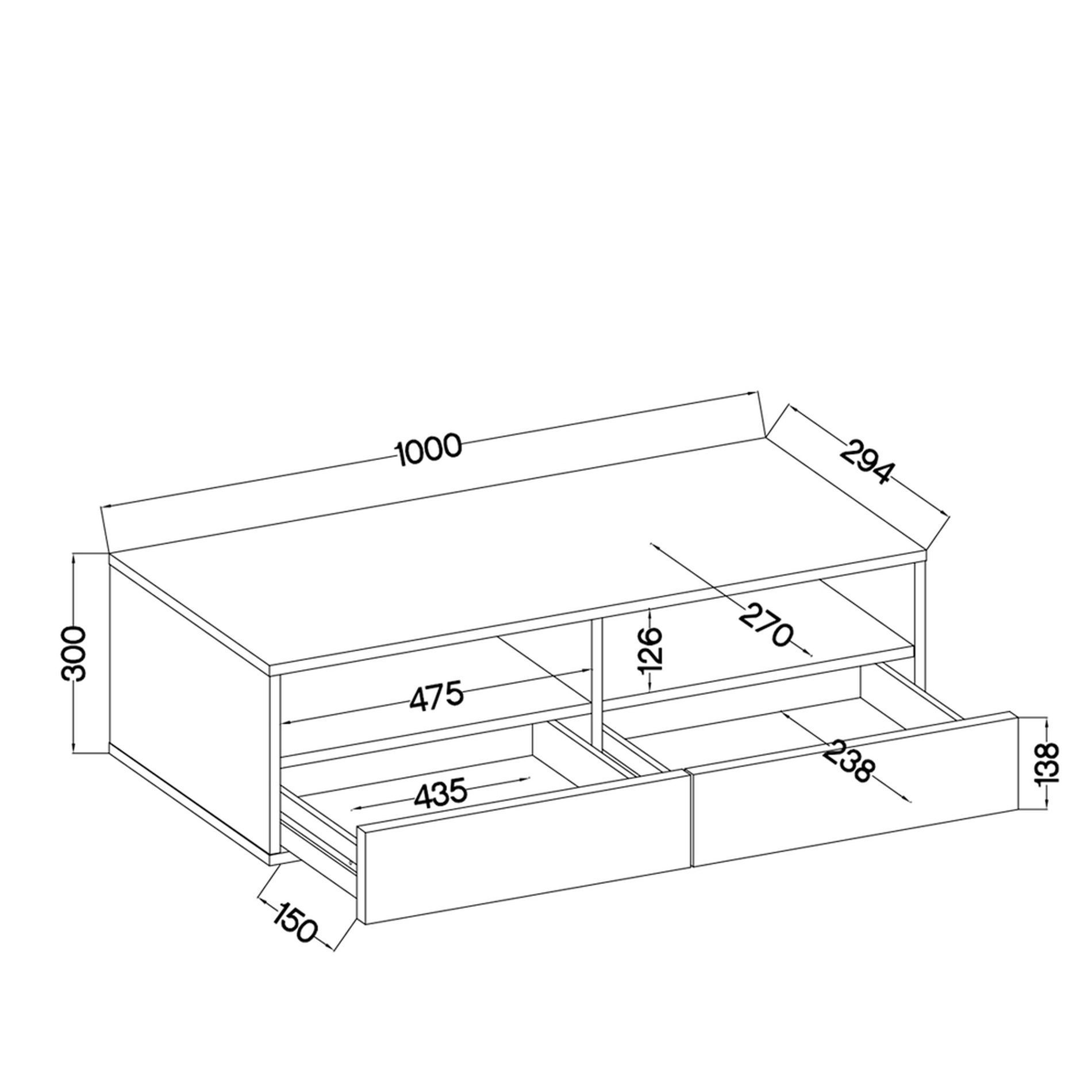 Sie suchen einen modernen TV-Schrank, der mit Stil überzeugt und zugleich ausreichend Stauraum für Ihre Technik und Ihr Zubehör bietetEuro Der TV-Schrank Rednaw kombiniert ein klares, geometrisches Design mit durchdachter Funktionalität - die perfekte Lösung für ein aufgeräumtes, harmonisches Wohnam