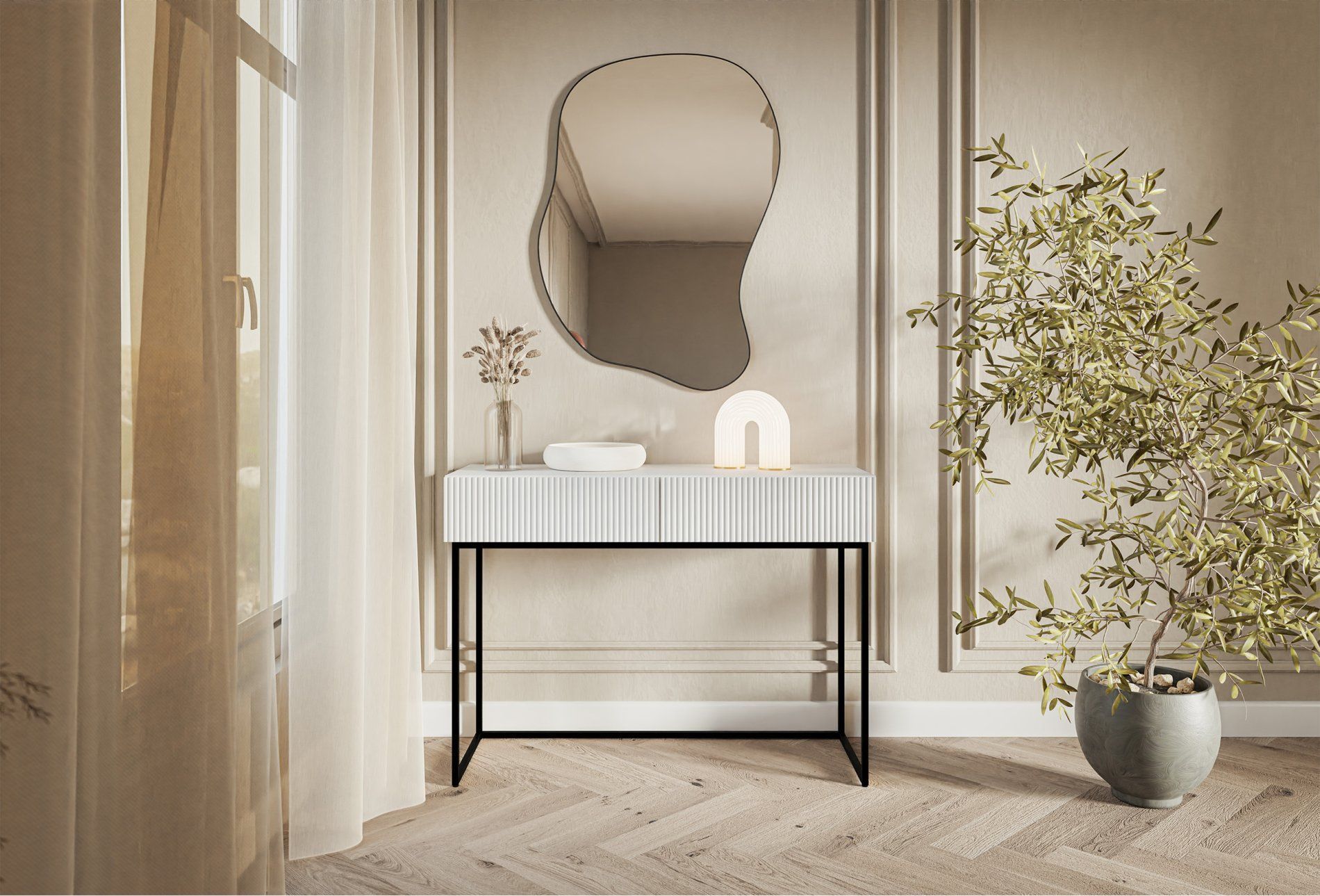 Selsey VELDIO - Schminktisch mit 2 Schubladen, weiß, 110 cm