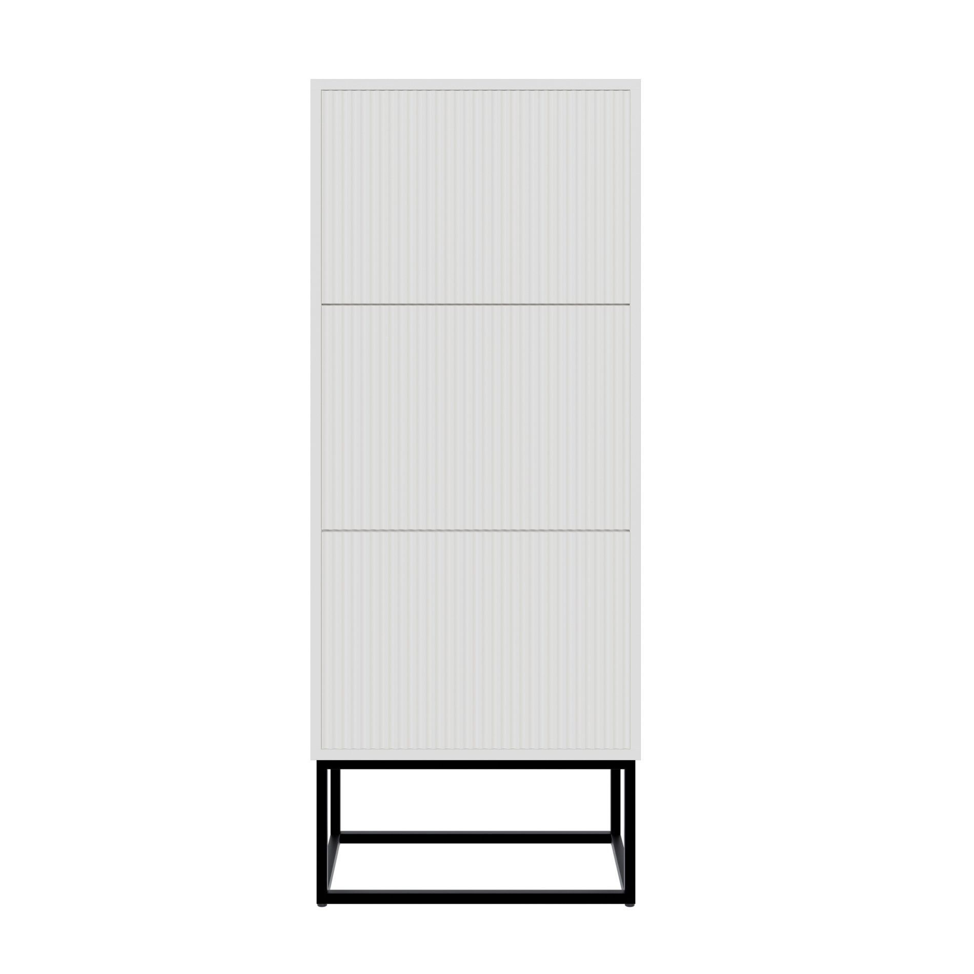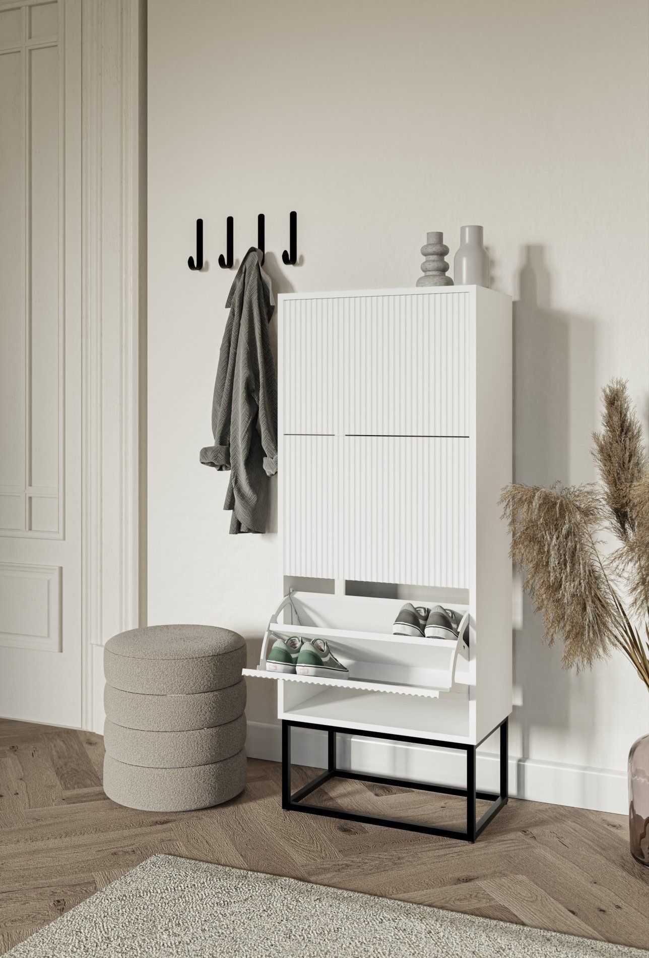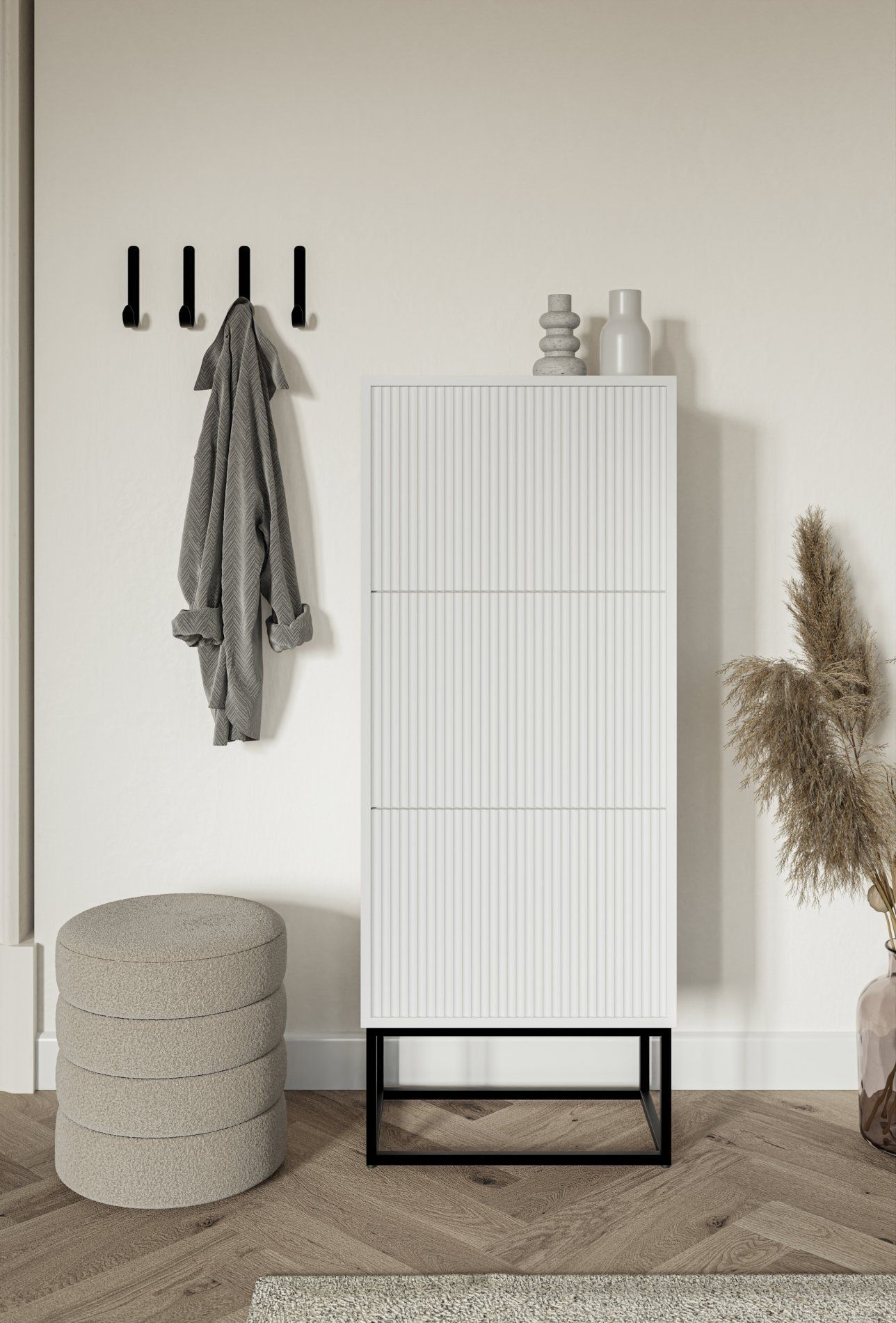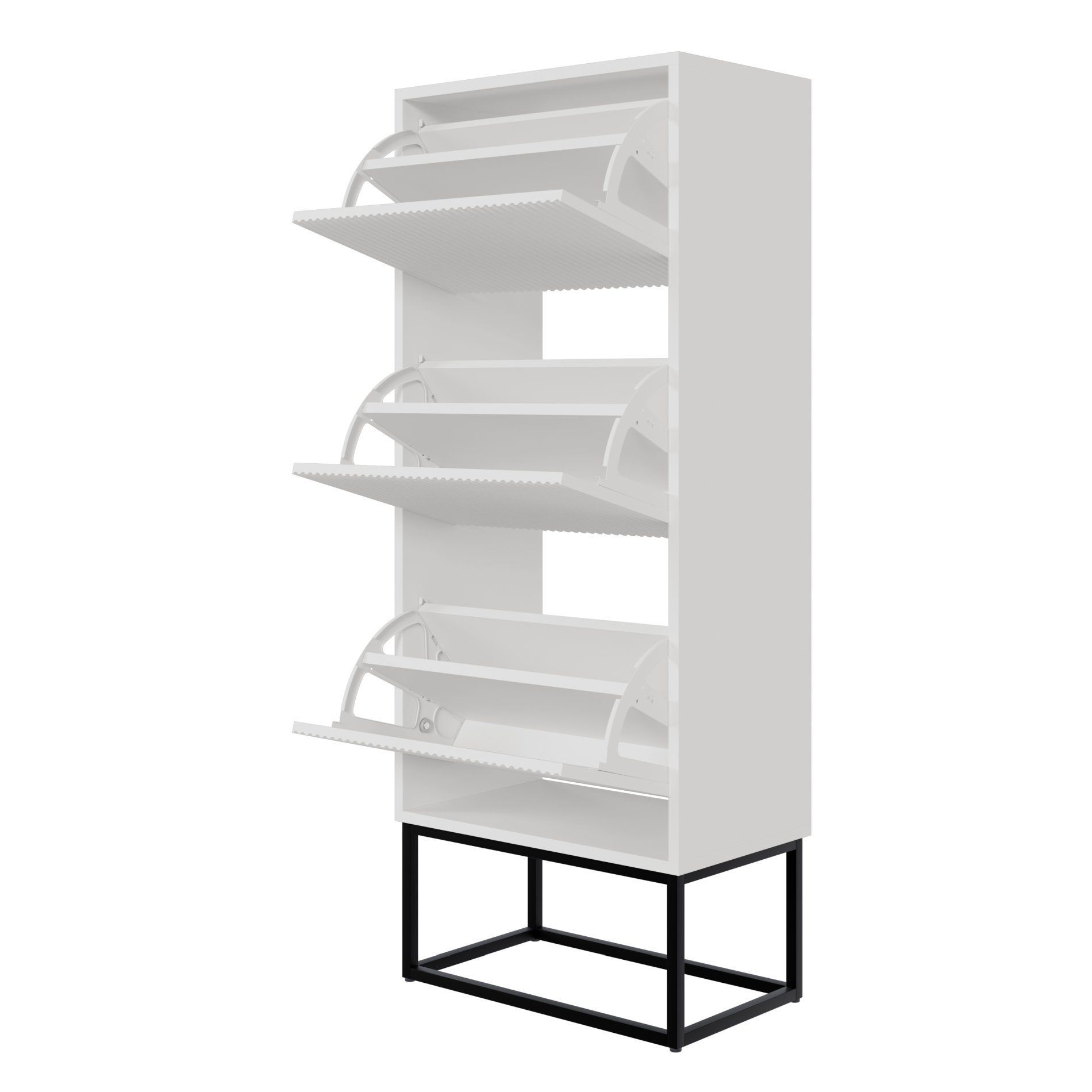 Selsey VELDIO - Schuhschrank mit 3 Klappen, Weiß mit schwarzem Metallgestell, 50 cm