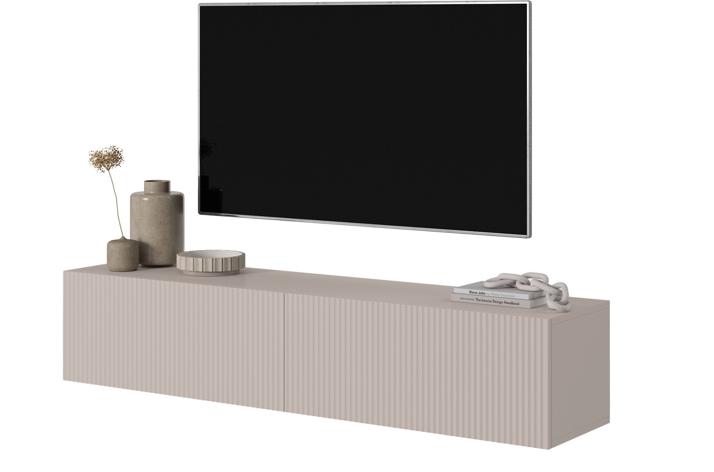 Selsey VELDIO - TV-Hängeboard, Beige mit Lamellenfronten, 140 cm