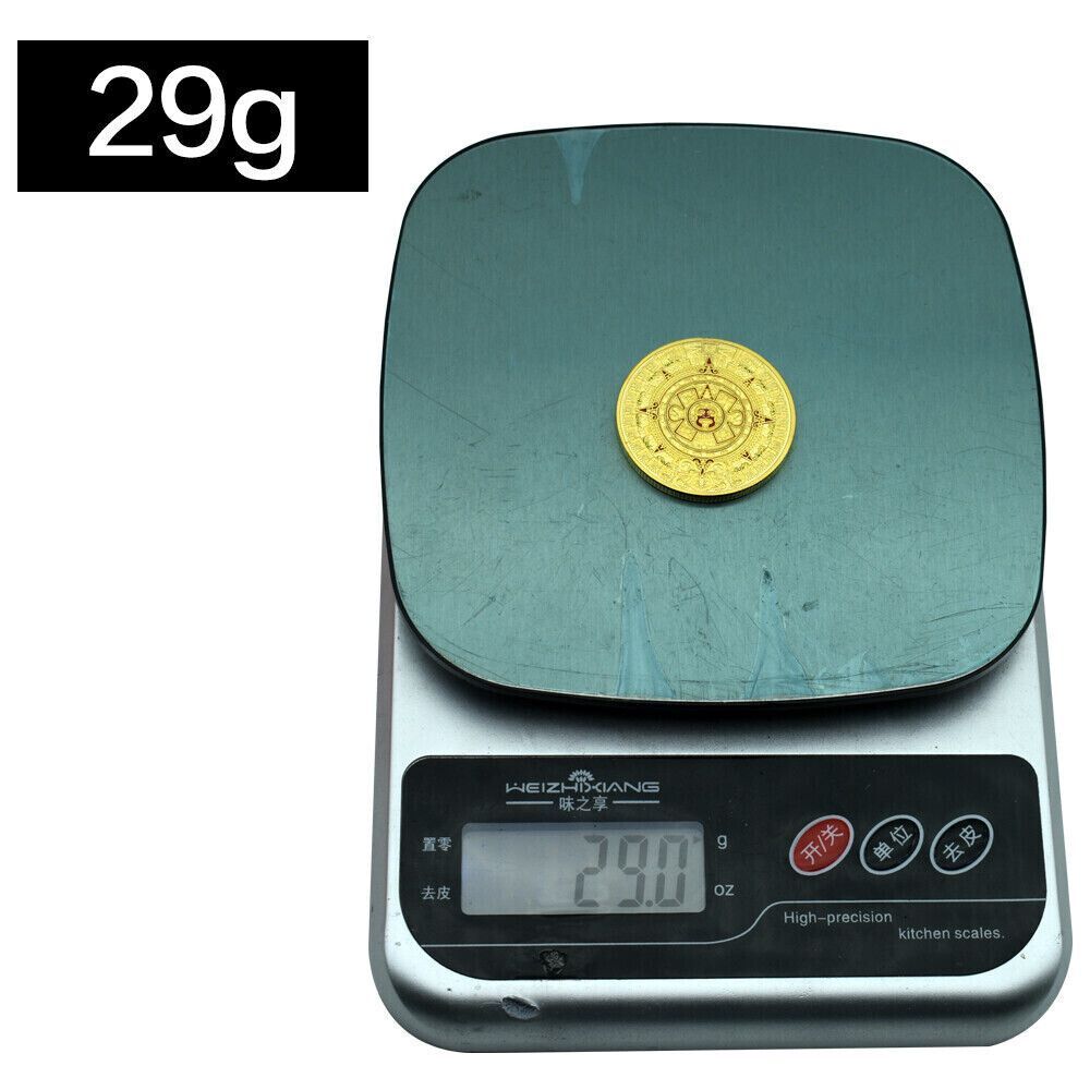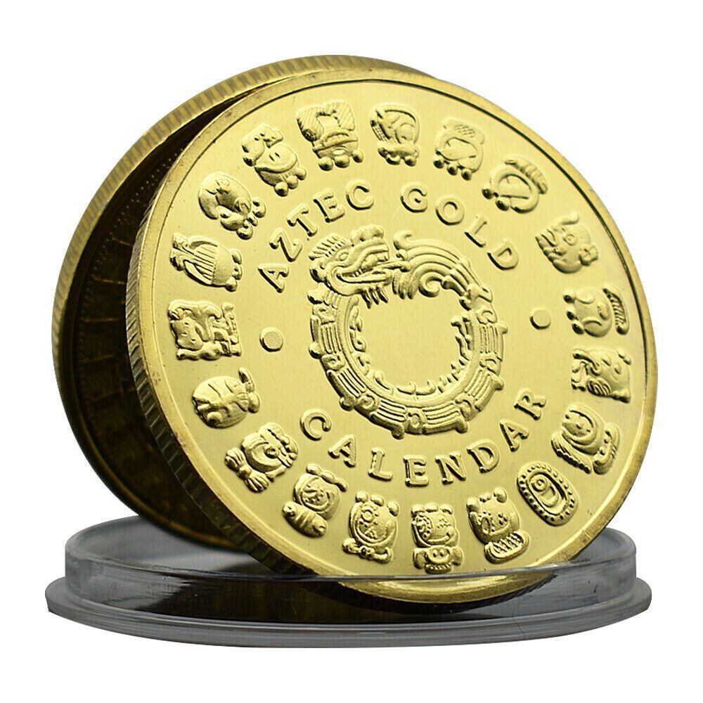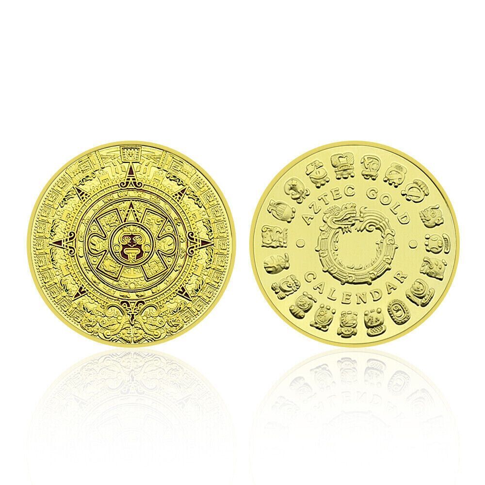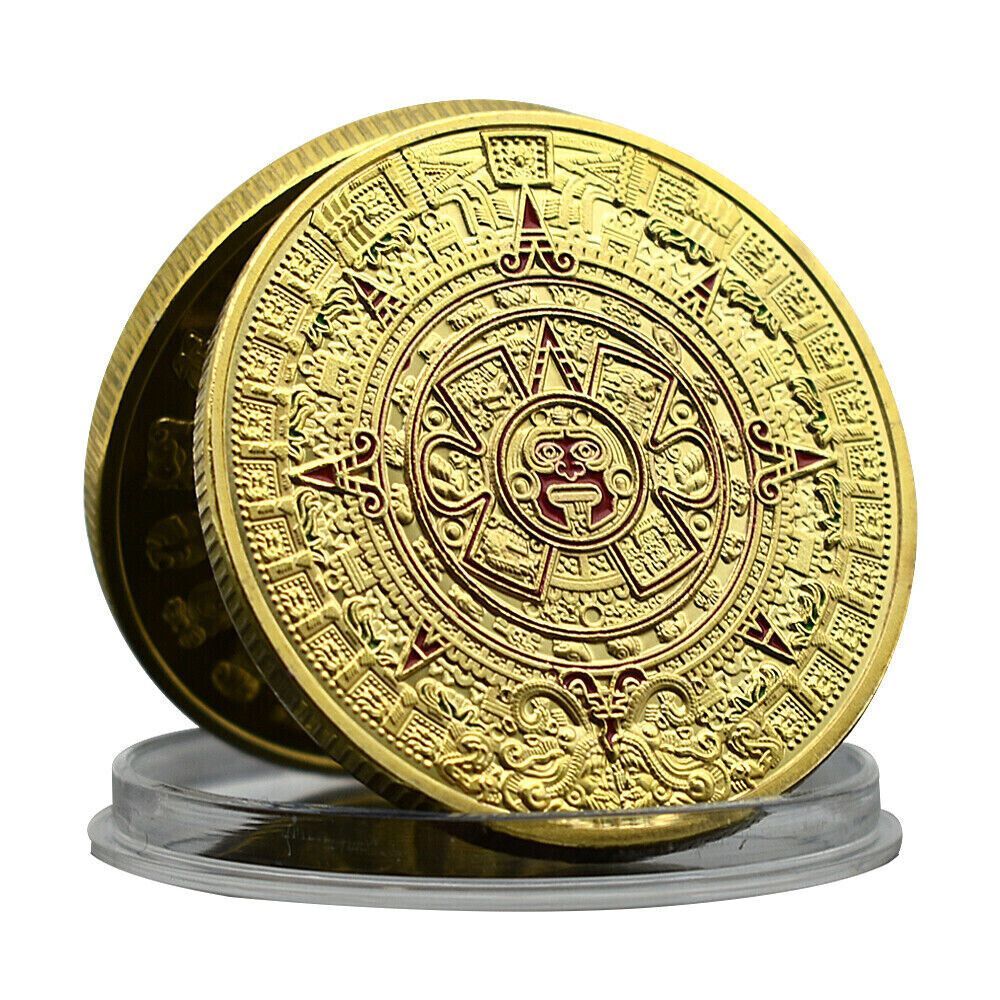 Schöne Maya Kalender Medaille wie abgebildet Material: Kupfer vergoldet mit Farbe Größe: 40 mm Gewicht: ca. 29 Gramm Erhaltung: Polierte Platte Verpackung: Kapsel Erhaltung: Polierte Platte (Optische Mängel möglich) Verpackung: Kapsel Ideal für Sammler oder auch einfach nur ein schönes Geschenk.