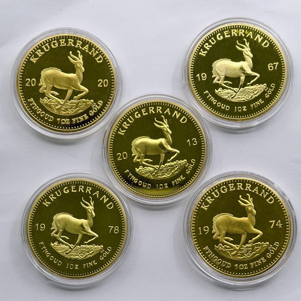 5 Stück Schöne Nachprägungs Medaille Südafrika Krugerrand wie abgebildet Jahrgänge: 1967, 1974, 1978,2013,2020 Technische Information zum Artikel Material Gold Plated Größe: 40mm Erhaltung: Polierte Platte (Optische Mängel möglich) Verpackung: Kapsel Ideal für Sammler oder auch einfach nur ein schön
