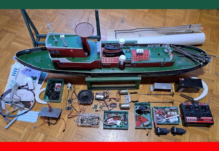 Biete hier schweren Herzens ein seltenes, angefangenes Restaurationsobjekt, das Feuerlöschboot Strazak-3 als voll funktionsfähigem RC-Modell. Es steht bei mir schon eine ganze Weile rum und mir fehlt die Zeit es weiterzubauen. Alle neu zu verbauenden Teile wurden bereits gekauft wie eine Fernsteueru
