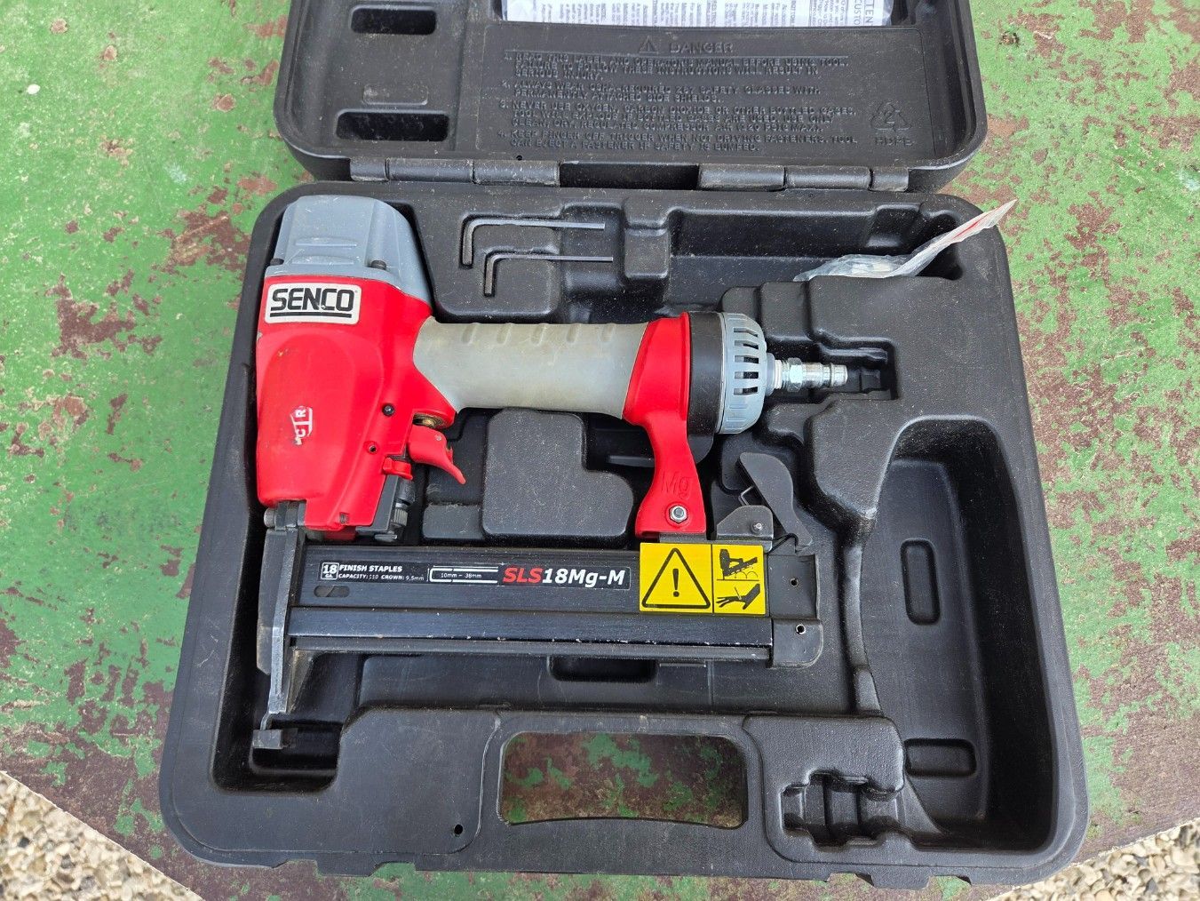 SENCO Klammergerät SLS 18Mg-M (30) DK gebraucht voll funktionsfähig ist im Originalzustand, CE geprüft geliefert wie auf den Fotos zu sehen ist, kein weiteres Zubehör soweit es Fehler oder Defekte gibt wären die oben beschrieben und Blau gekennzeichnet Nach erhalt des Gerätes 24 Stunden an Strom ans