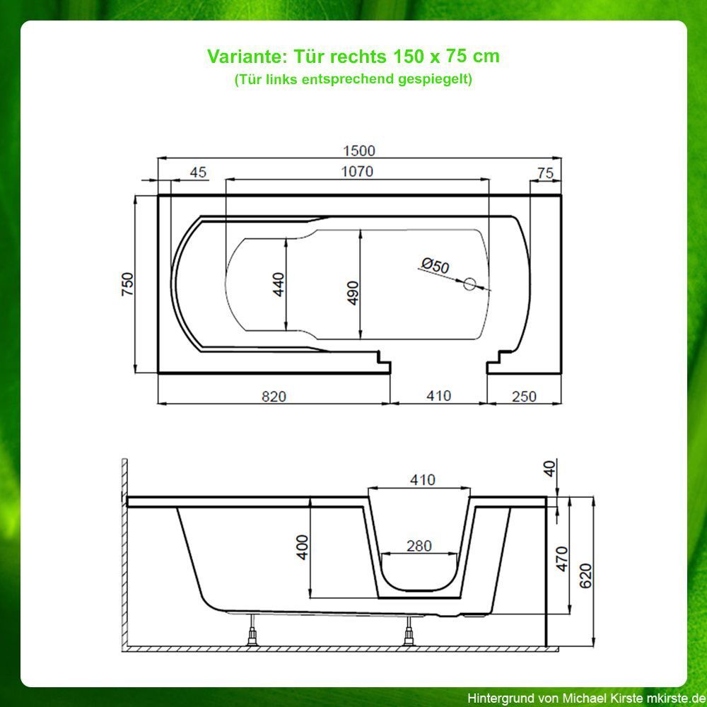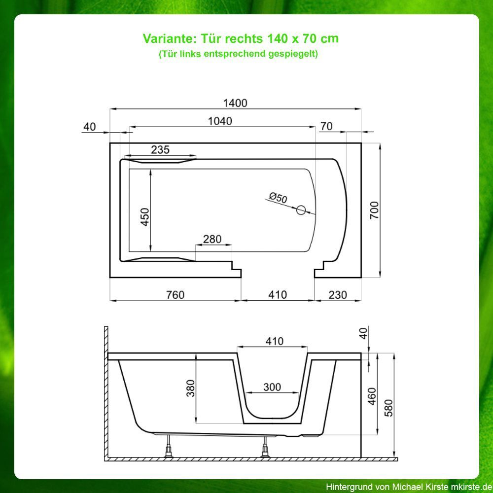 Seniorenbadewanne - Badewanne mit Tür und Sitz - unterschiedliche Größen