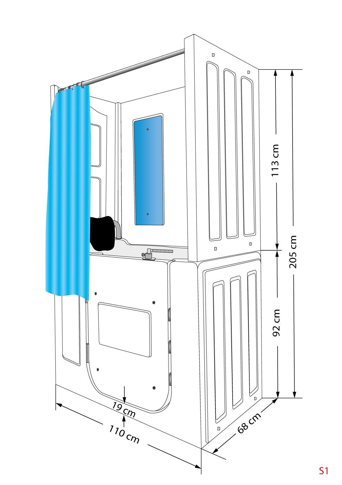 Seniorendusche und Kombination Wanne mit Whirlpool S08D-WP-TH-C-L 110x68x205cm