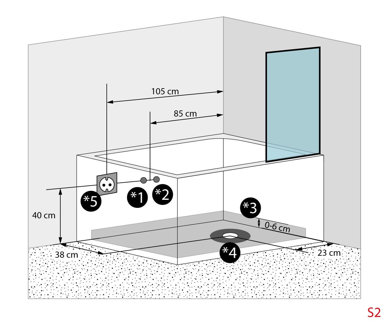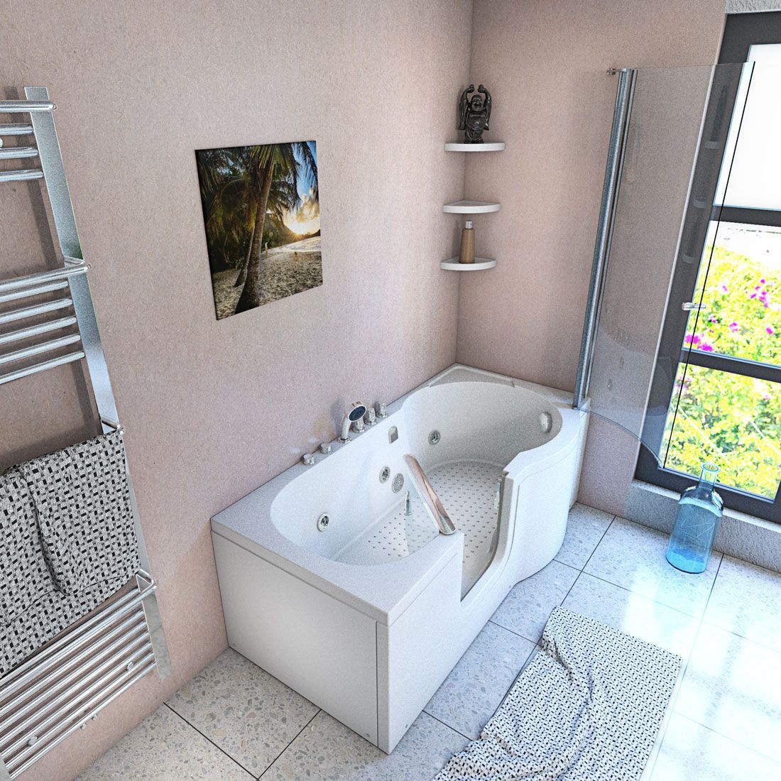 Seniorendusche und Wanne mit Whirlpool S12D-TH-WP-L Dusche 170x85cm