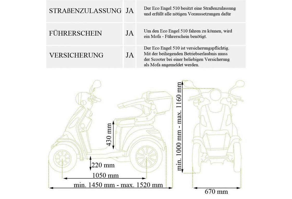 Seniorenmobil ECO ENGEL 510 Blau, E-Quad, 25 km/ h, 20 Ah Li-Io Akku Herausnehmbar