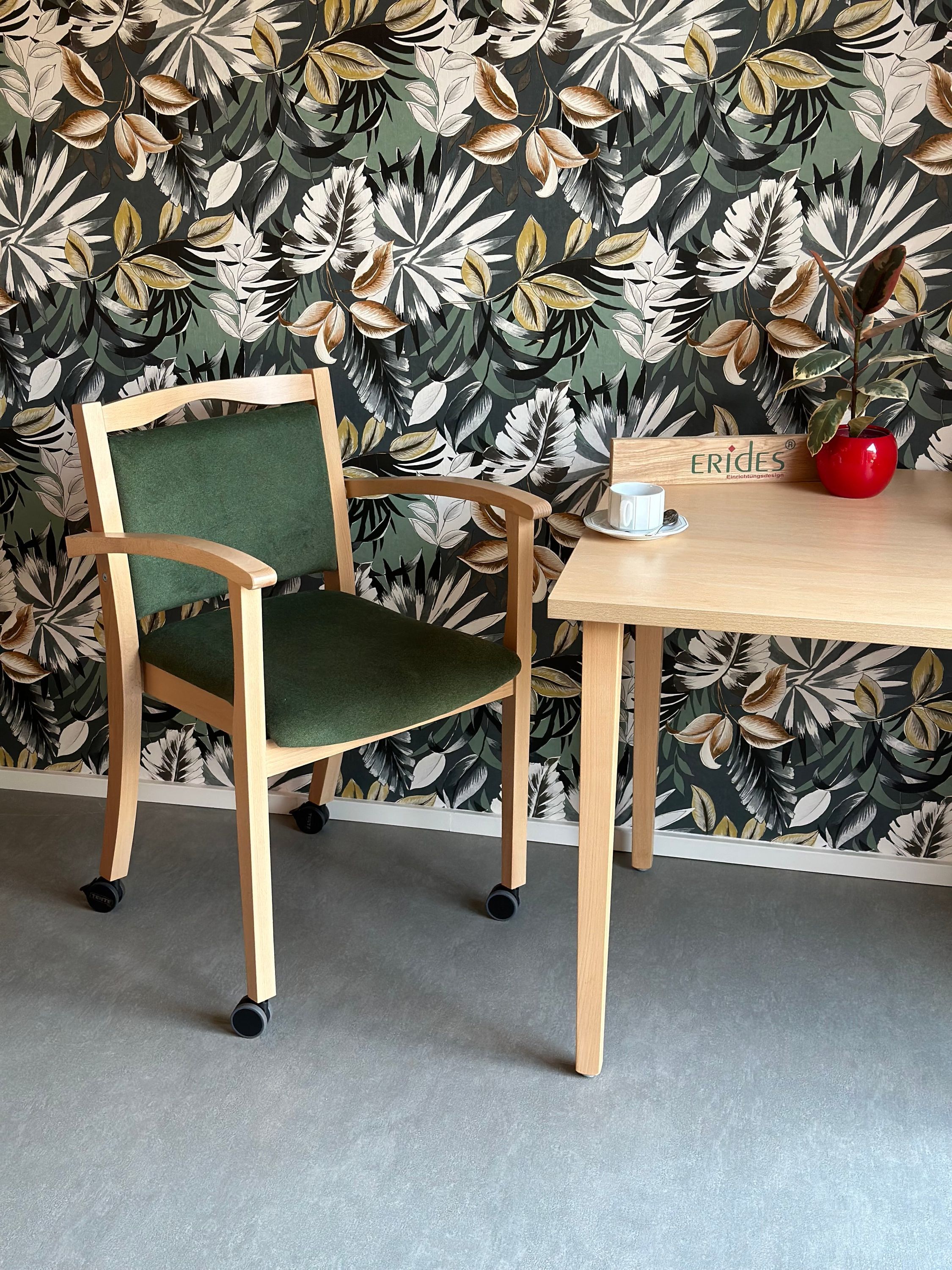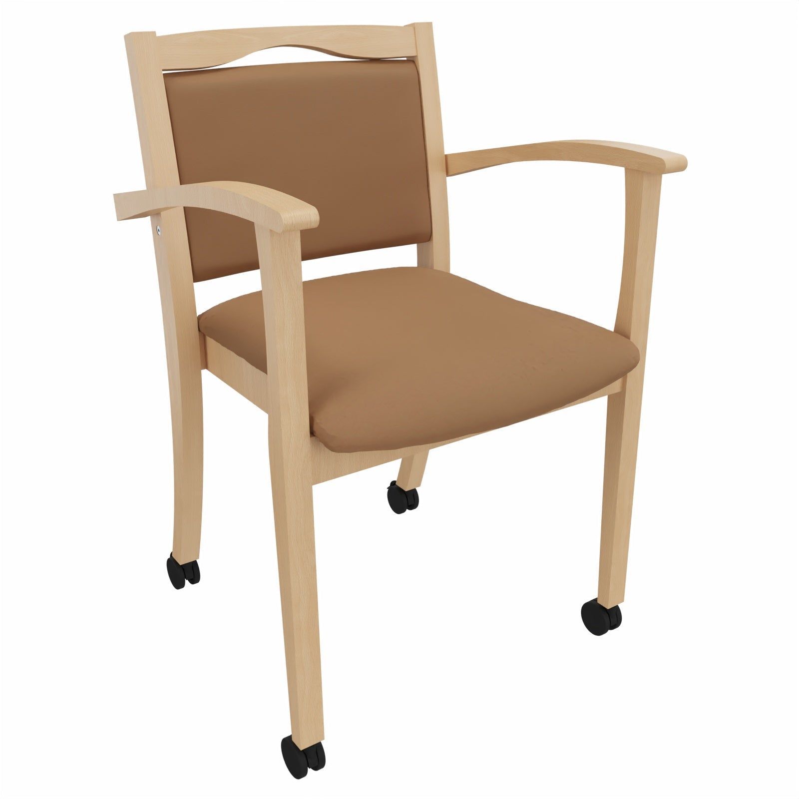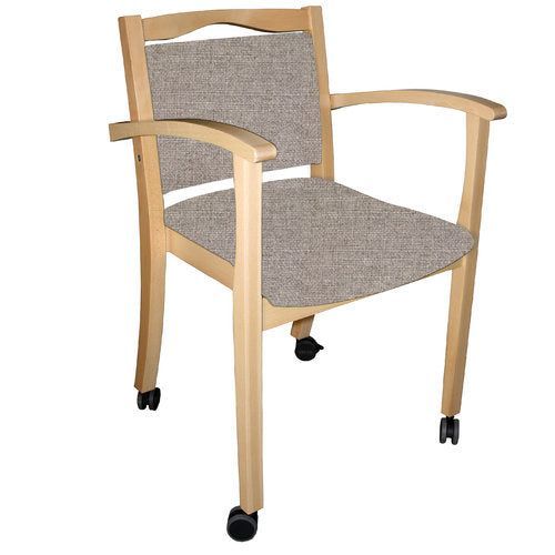 Komfortabler Pflegestuhl mit Armlehnen und Rollen - Stoff Kariba Beige / 58,5cm