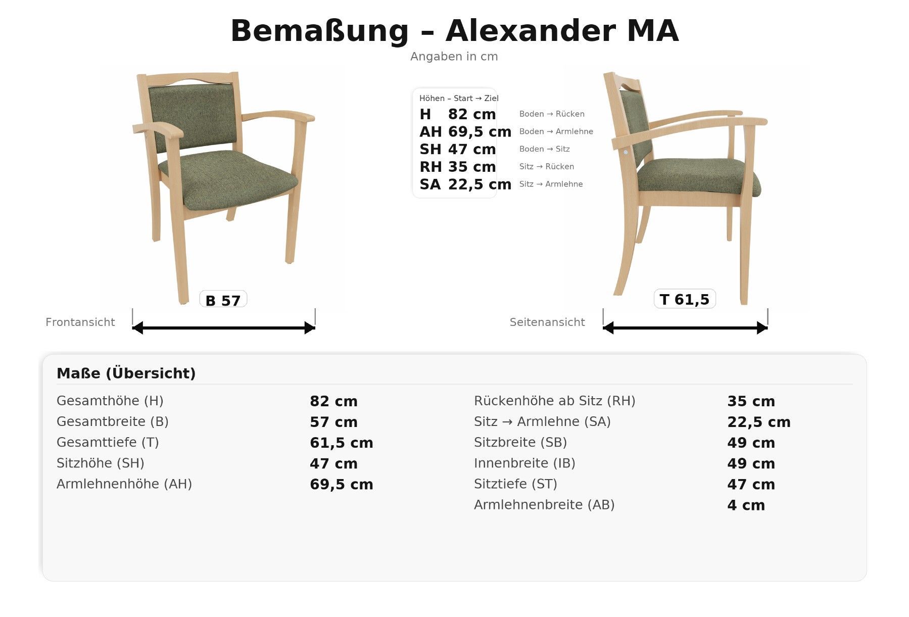Seniorenstuhl Alexander mit Armlehnen - Sitzhöhe 47cm - SG018-0006N