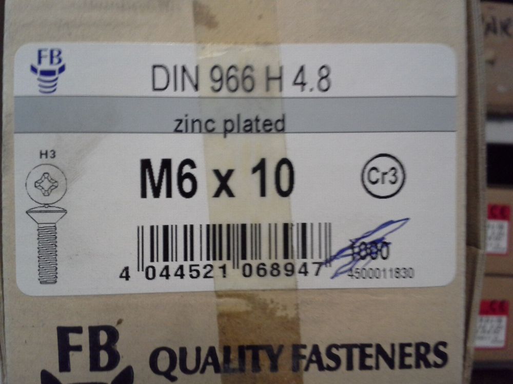 Senkschrauben mit PH3 DIN 966H 4.8, M6 x 10, Verz. 100 Stk