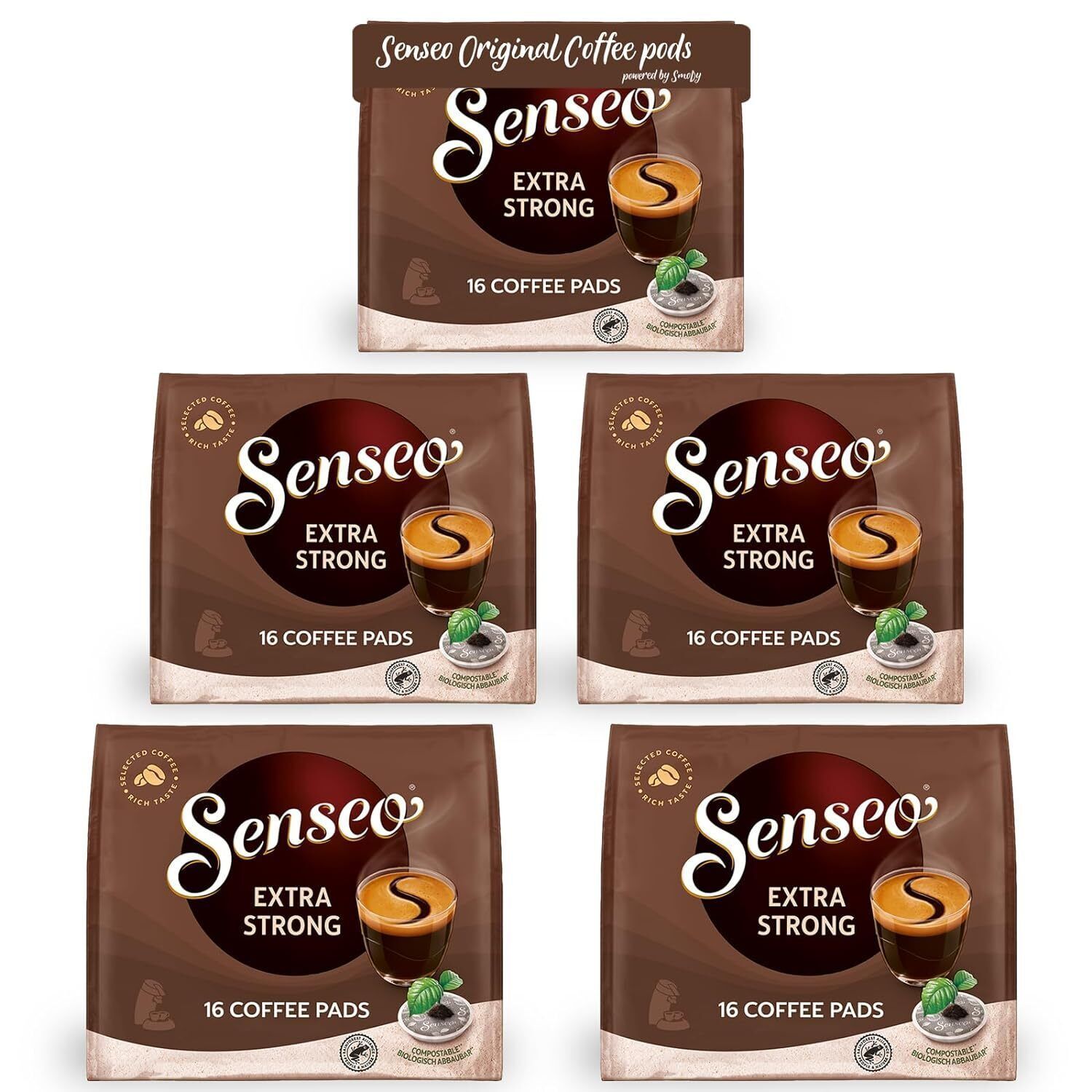 Senseo Pads Extra Strong Kaffee RA-zertifiziert 5 Packungen x 16 Kaffeepads