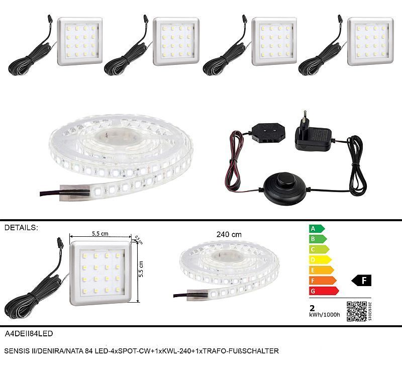 SENSIS II/DENIRA/NATA 84 LED-4xSPOT-CW+1xKWL-240 + 1xTRAFO-FUßSCHALTER