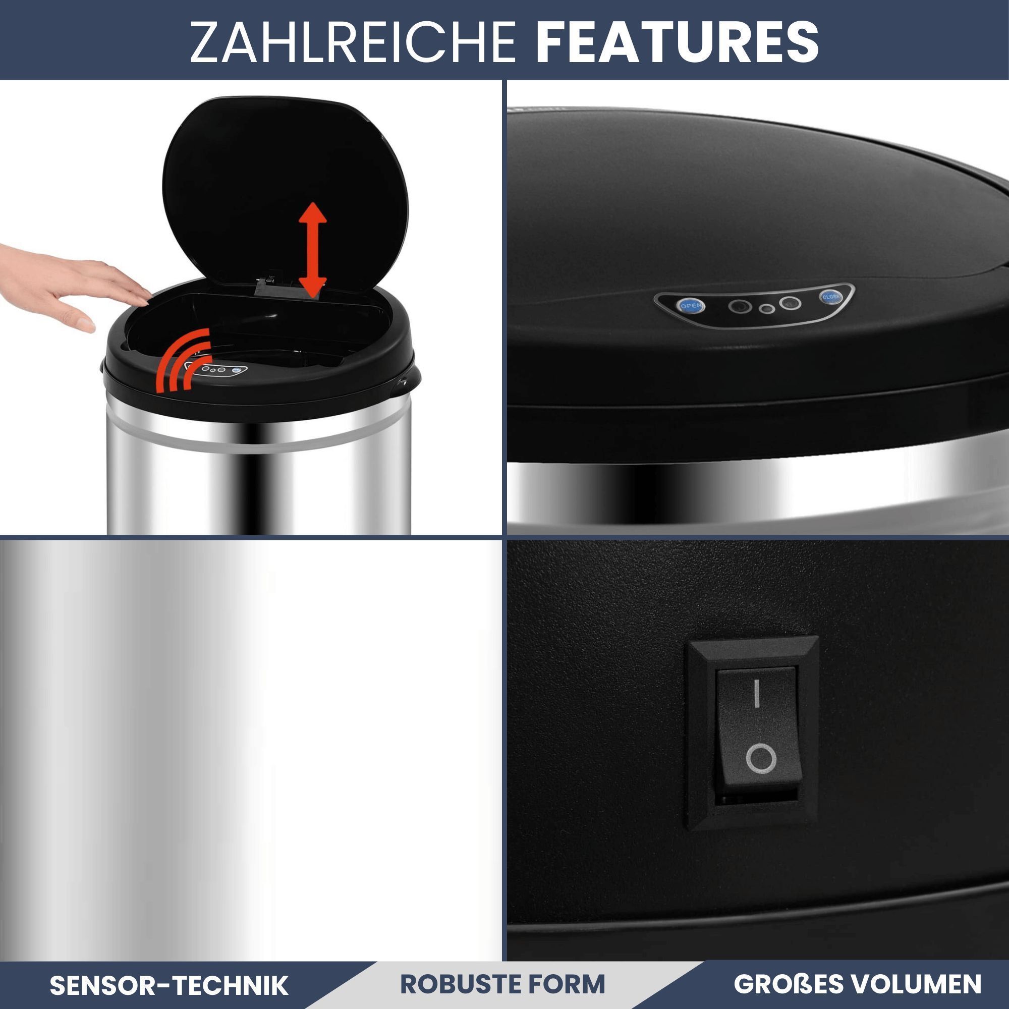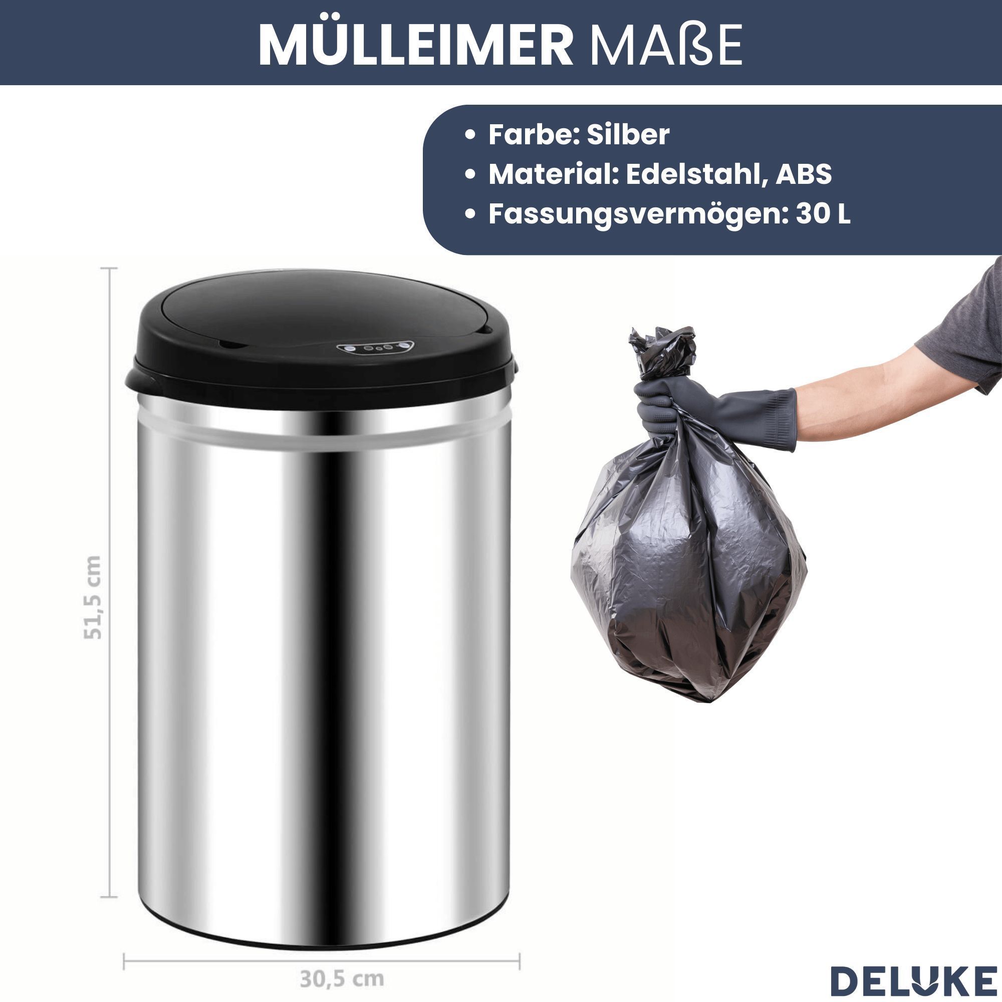 Sensor Mülleimer Küche 30L Edelstahl Automatik Bewegungssensor Klemmring Smarter