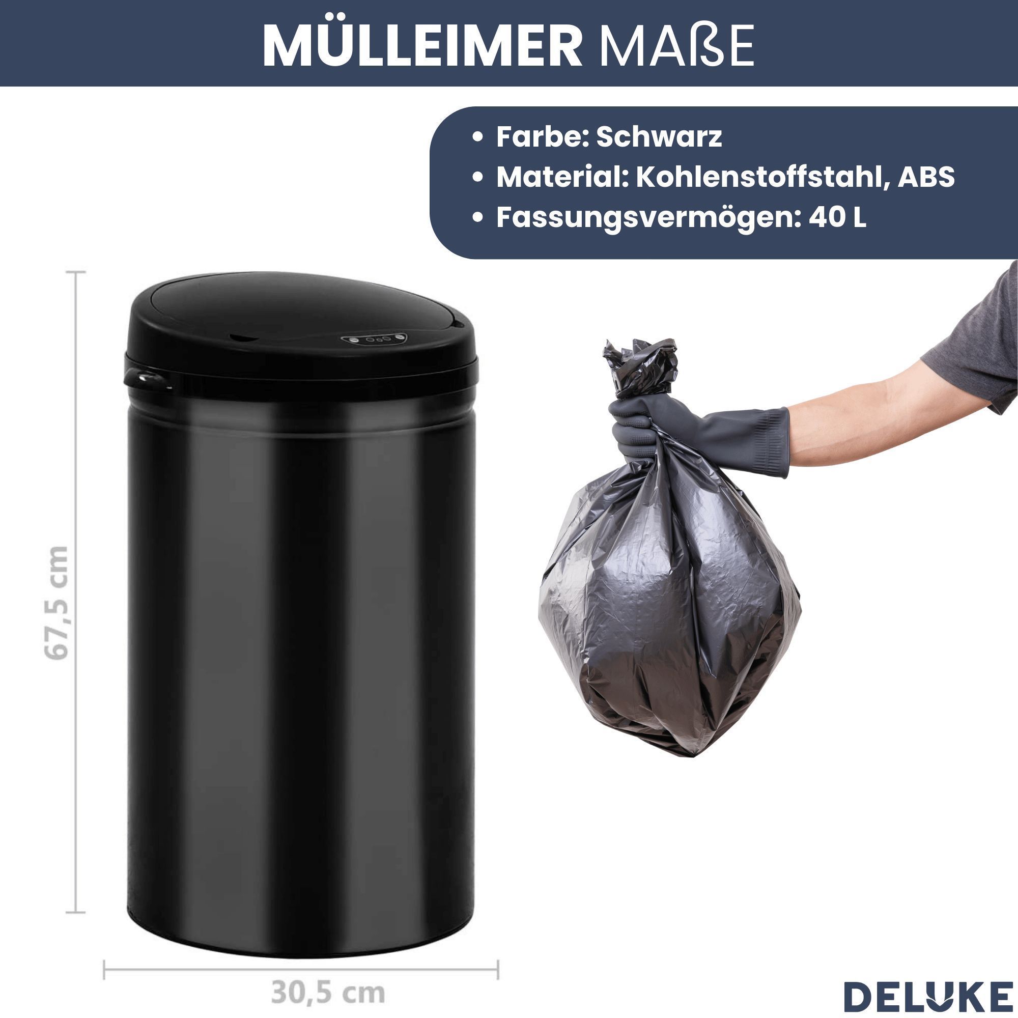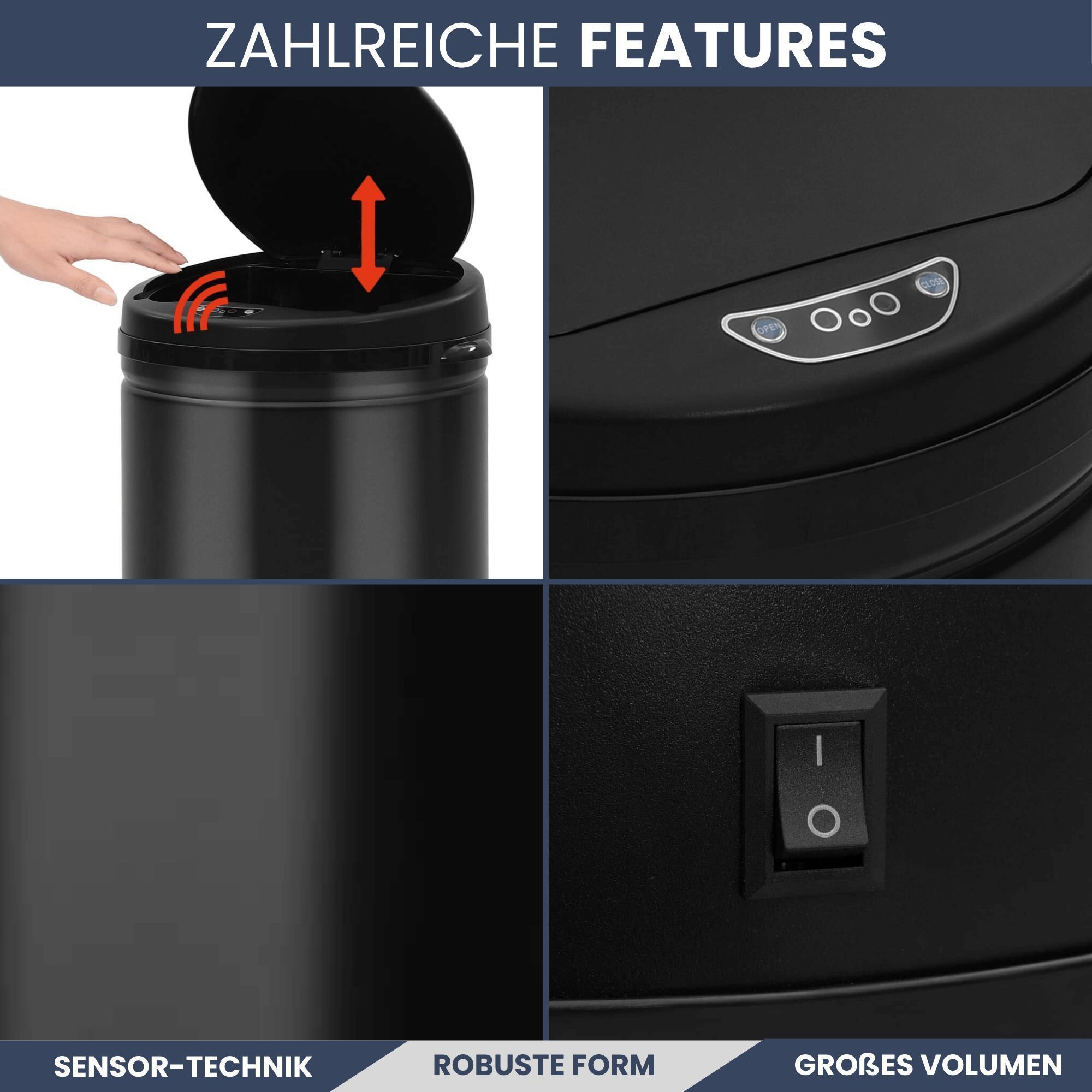 Sensor Mülleimer Küche 40L Schwarz Automatik Bewegungssensor Klemmring Smarter
