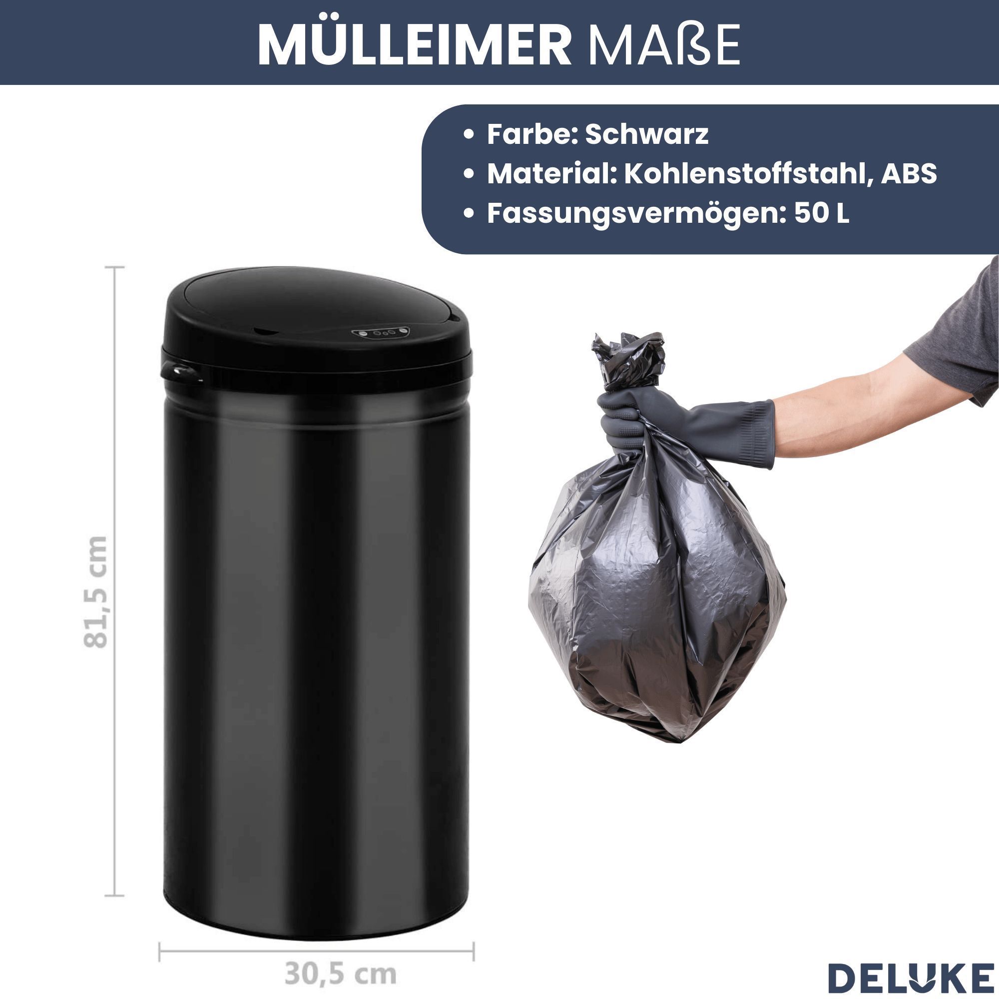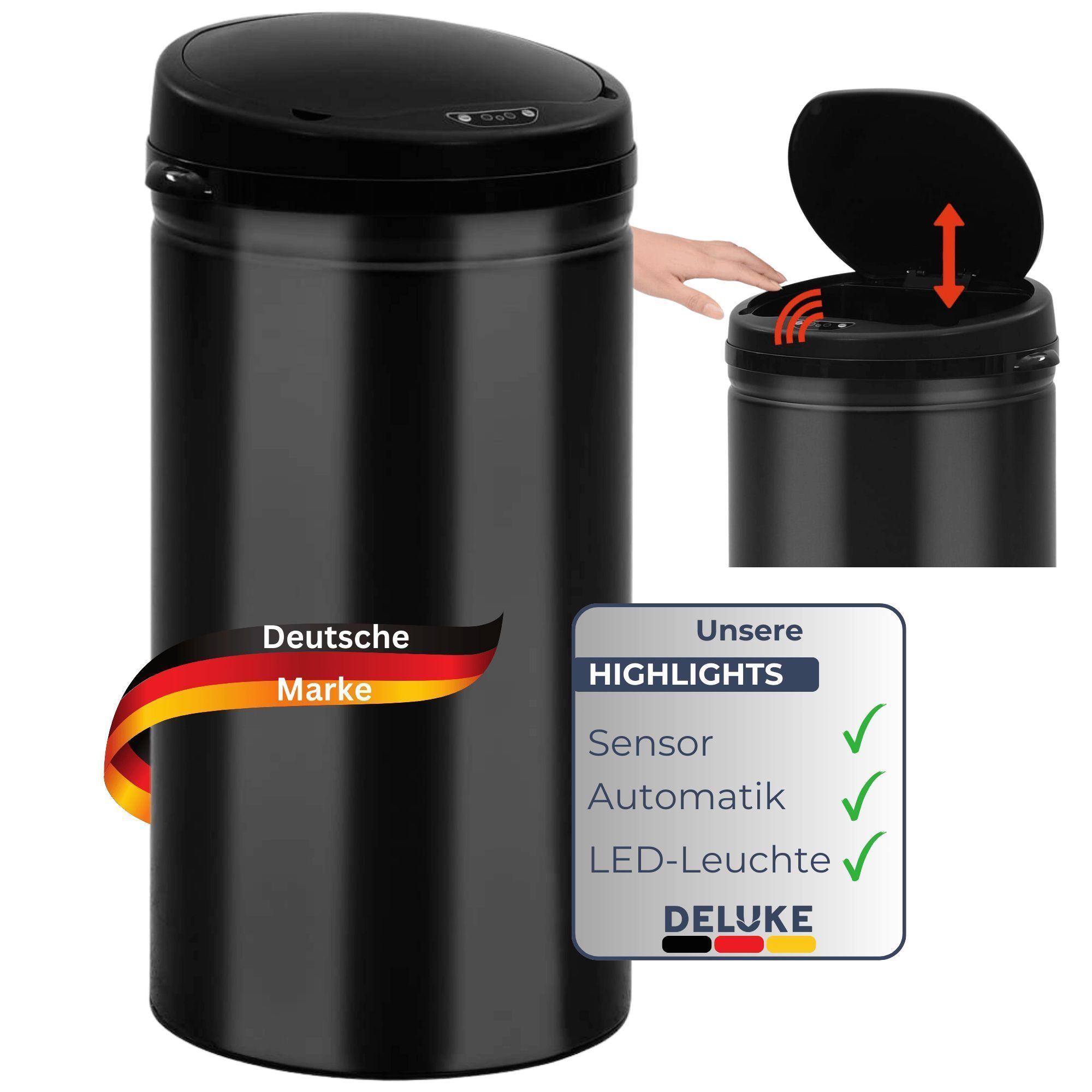 Sensor Mülleimer Küche 50L Schwarz Automatik Bewegungssensor Klemmring Smarter