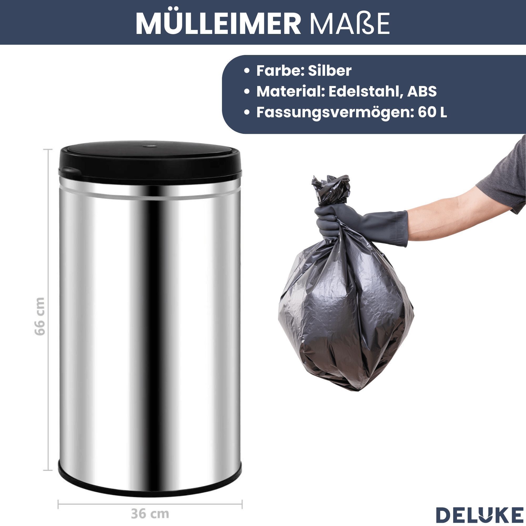 Sensor Mülleimer Küche 60L Edelstahl Automatik Bewegungssensor Klemmring Smarter