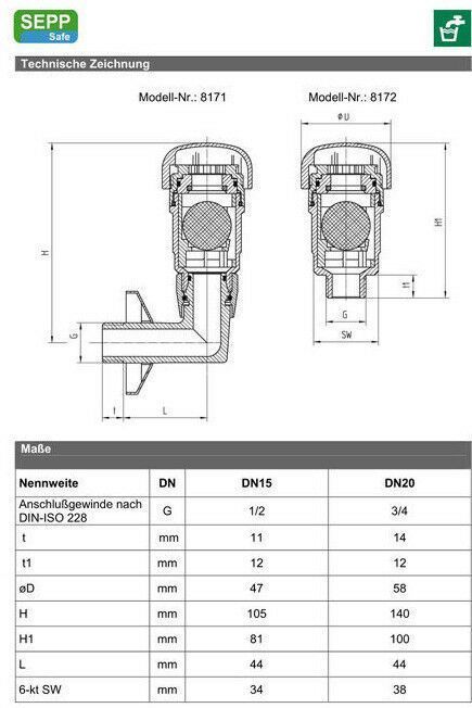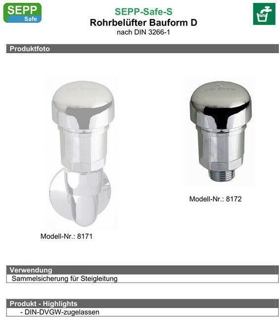 Seppelfricke Rohrbelüfter 1/2 DN 15 Strangbelüfter Strangentlüfter Belüfter DVGW