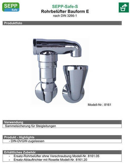 Seppelfricke Rohrbelüfter 1/2" DN15 Trinkwasser Strangbelüfter Strangentlüfter