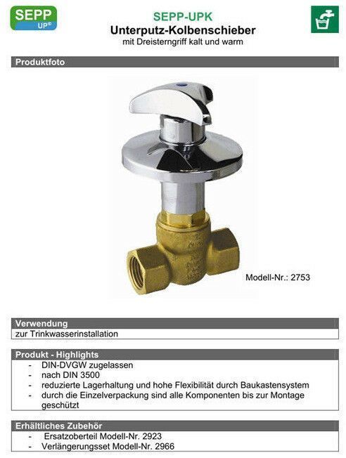 Seppelfricke Unterputzventil DN15 DN20 DN25 Wandeinbauventil UP Ventil Rundstrom