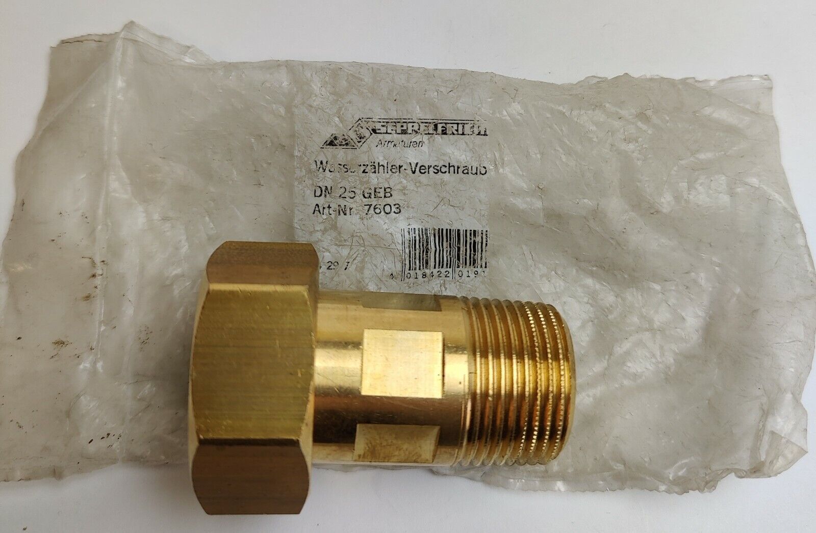 Wir bieten an: Seppelfricke Wasserzähler-Verschraubung DN25 7603 Artikel-Nr.: 7603 Maße: Gewinde AG 1Euro x IG 1 ¼Euro Länge 71 mm Nennweite: DN 25 Modell: Wasserzähler-Verschraubung Material: Messing Beschreibung: Seppelfricke Wasserzähler-Verschraubung mit Dichtung SOFORT LIEFERBAR! Original Heizu