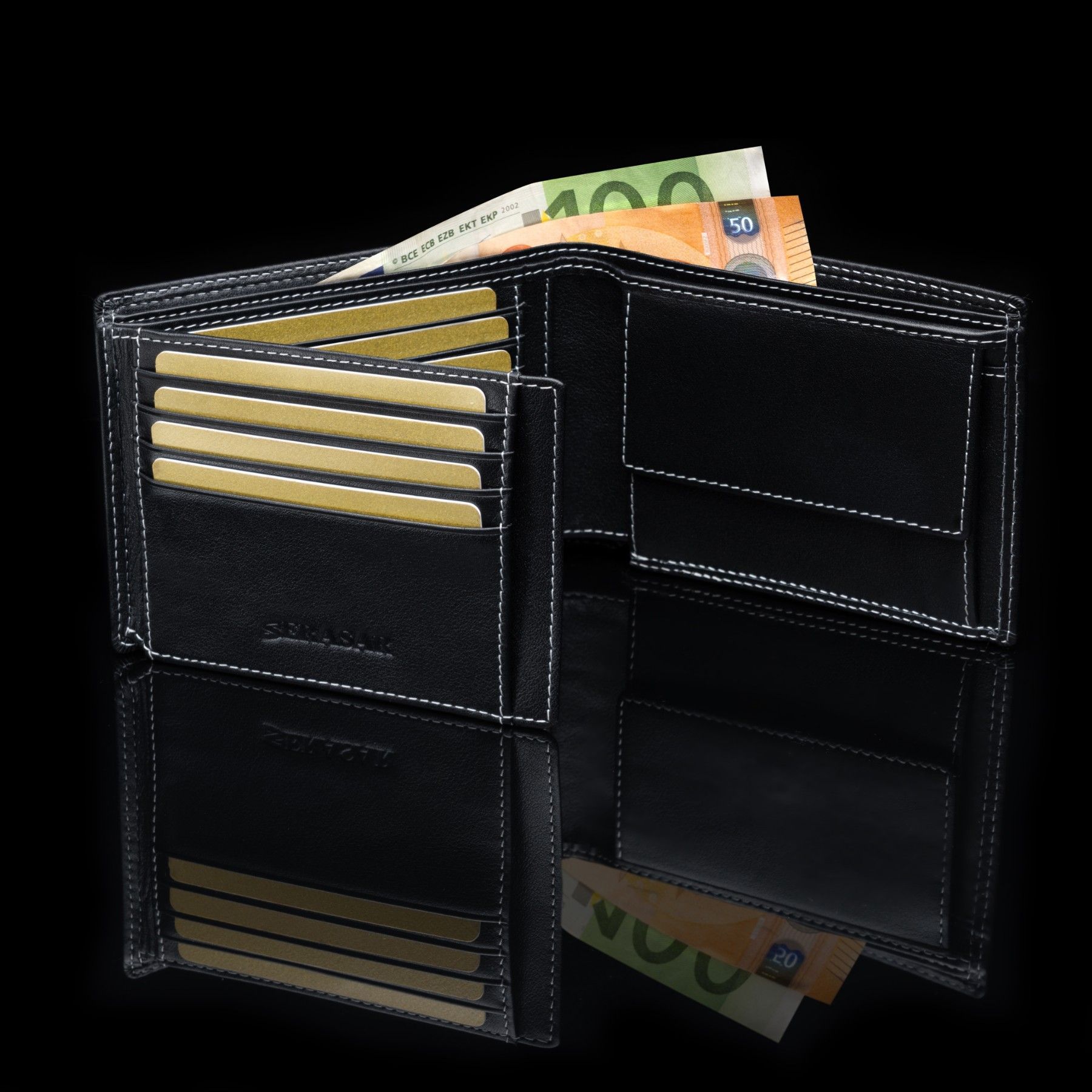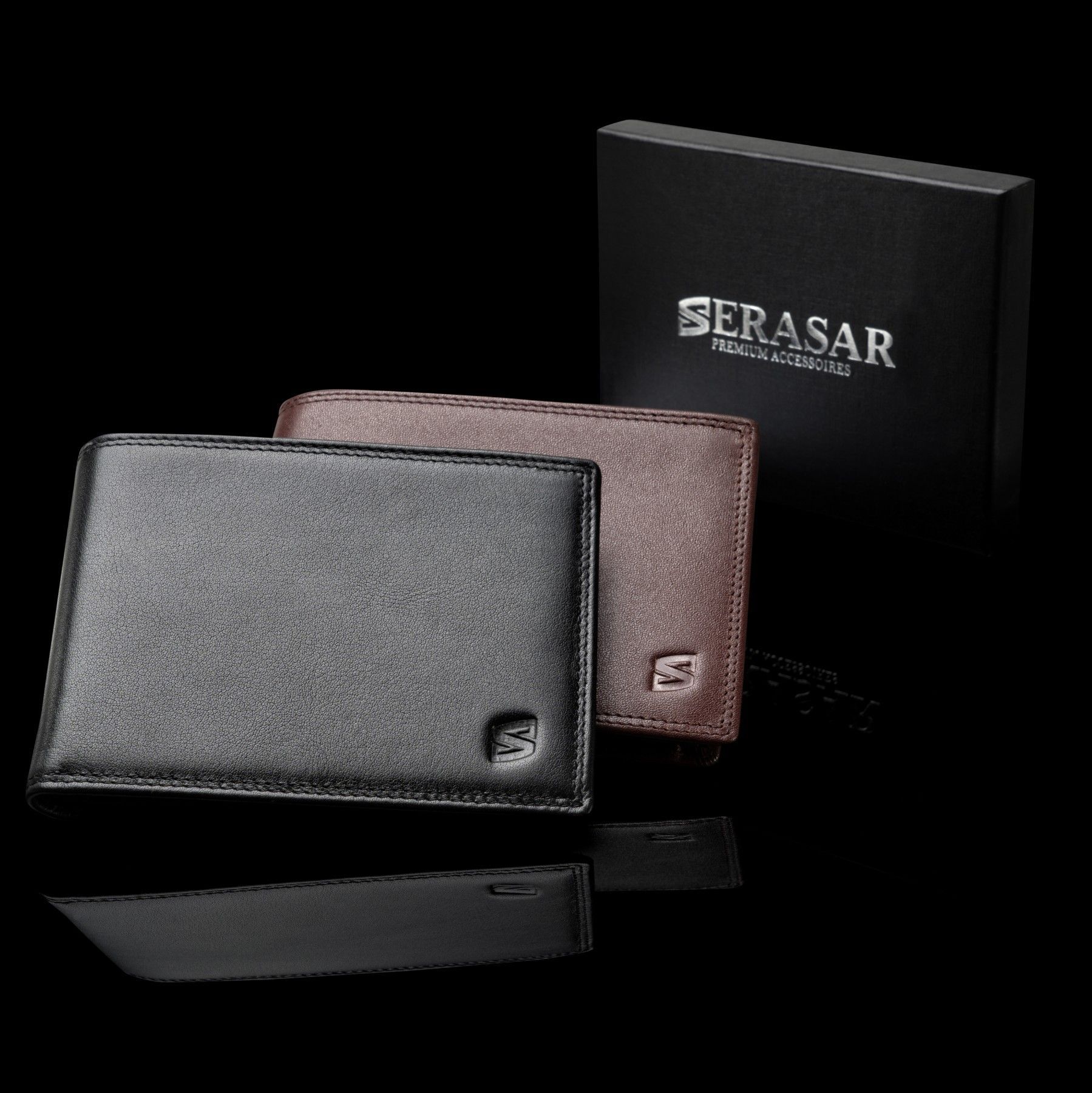 SERASAR Serasar Herren Leder Geldbörse "Space" RFID Schutz, 12 Kartenfächer, mit Geschenkbox