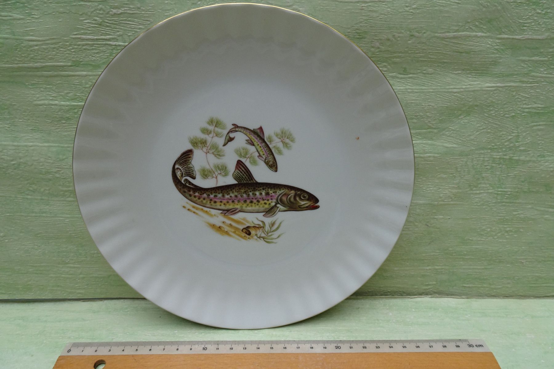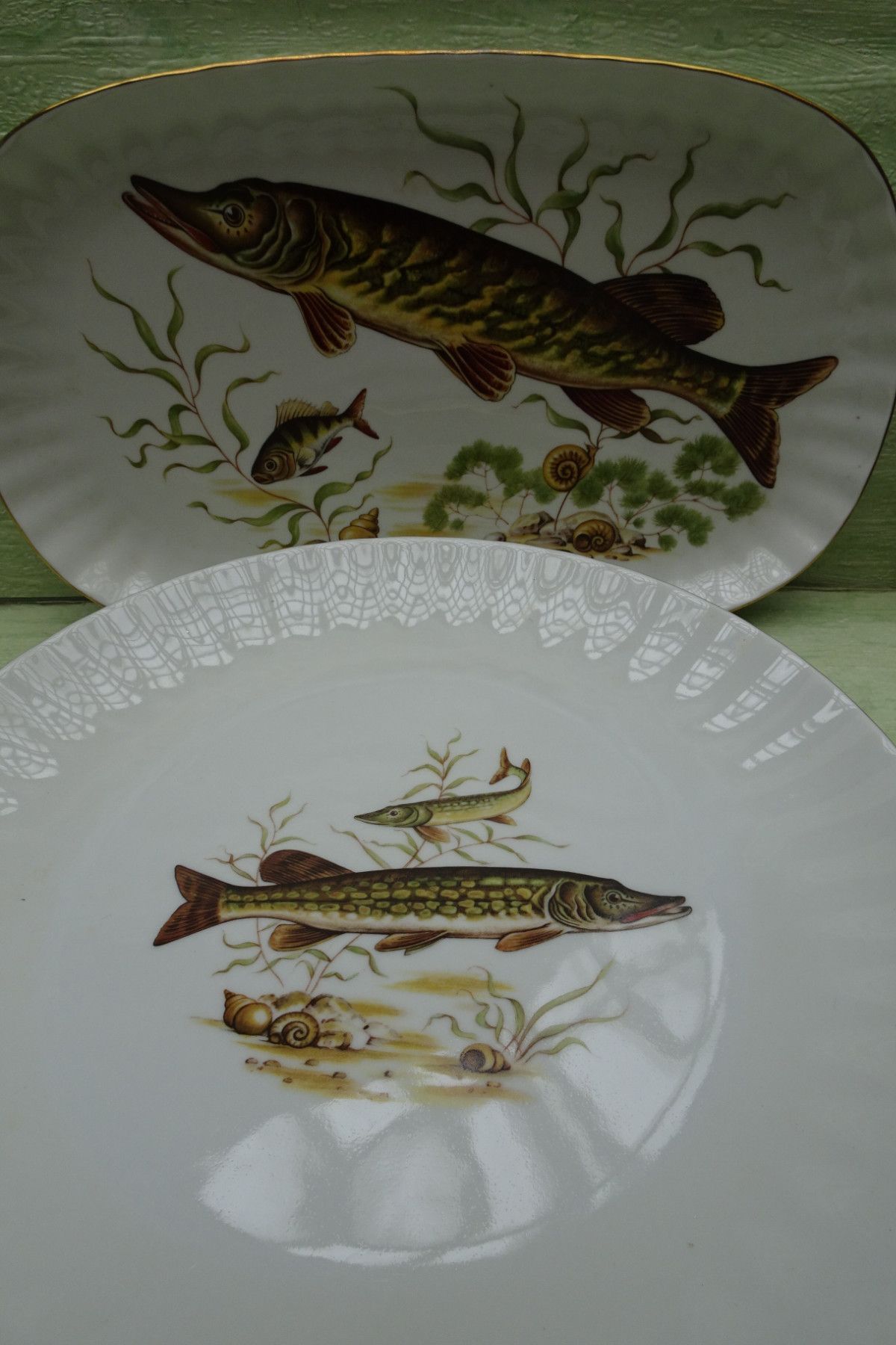 Service Fisch-Motive 6 " unterschiedliche " Eßteller & Platte Wunsiedel Retsch & Cie