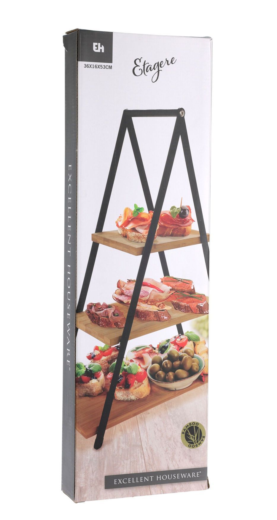 Servier Etagere mit 3 Ablagen aus Bambus - 53 x 36 cm - Holz Servierplatte Tablett