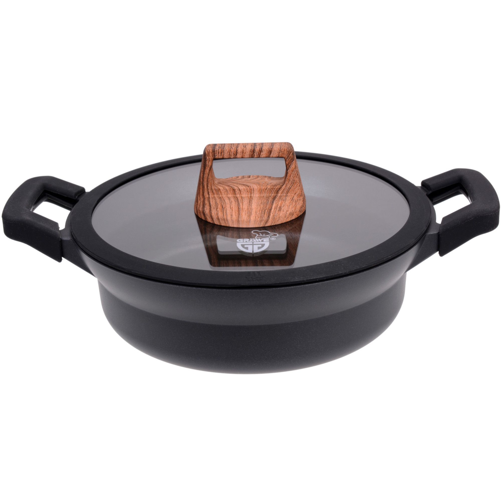 Bratpfanne, Profipfanne, Pfanne, Servierpfanne, Induktionsgeeignet, Alusgus, mit Deckel, Schmorpfanne, Sautierpfanne, Sautépfanne, Grillpfanne, Schmortopf, Bräter, Pfännchen, Universalpfanne, Antihaftbeschichtung, 28, cm,
