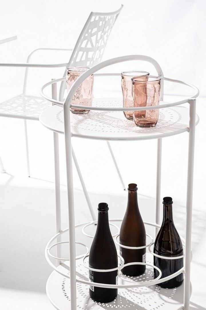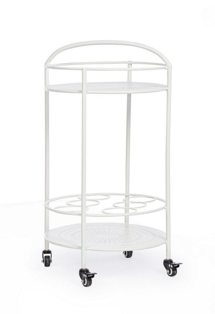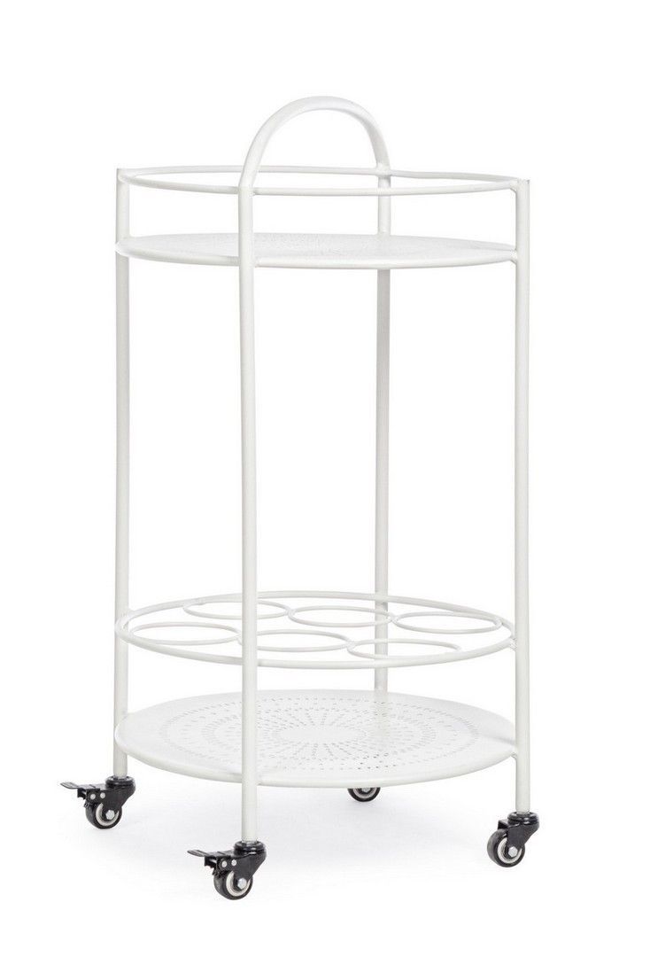 Servierwagen Burton Ø45 x 81 cm Weiß aus Metall mit Flaschenhalterung