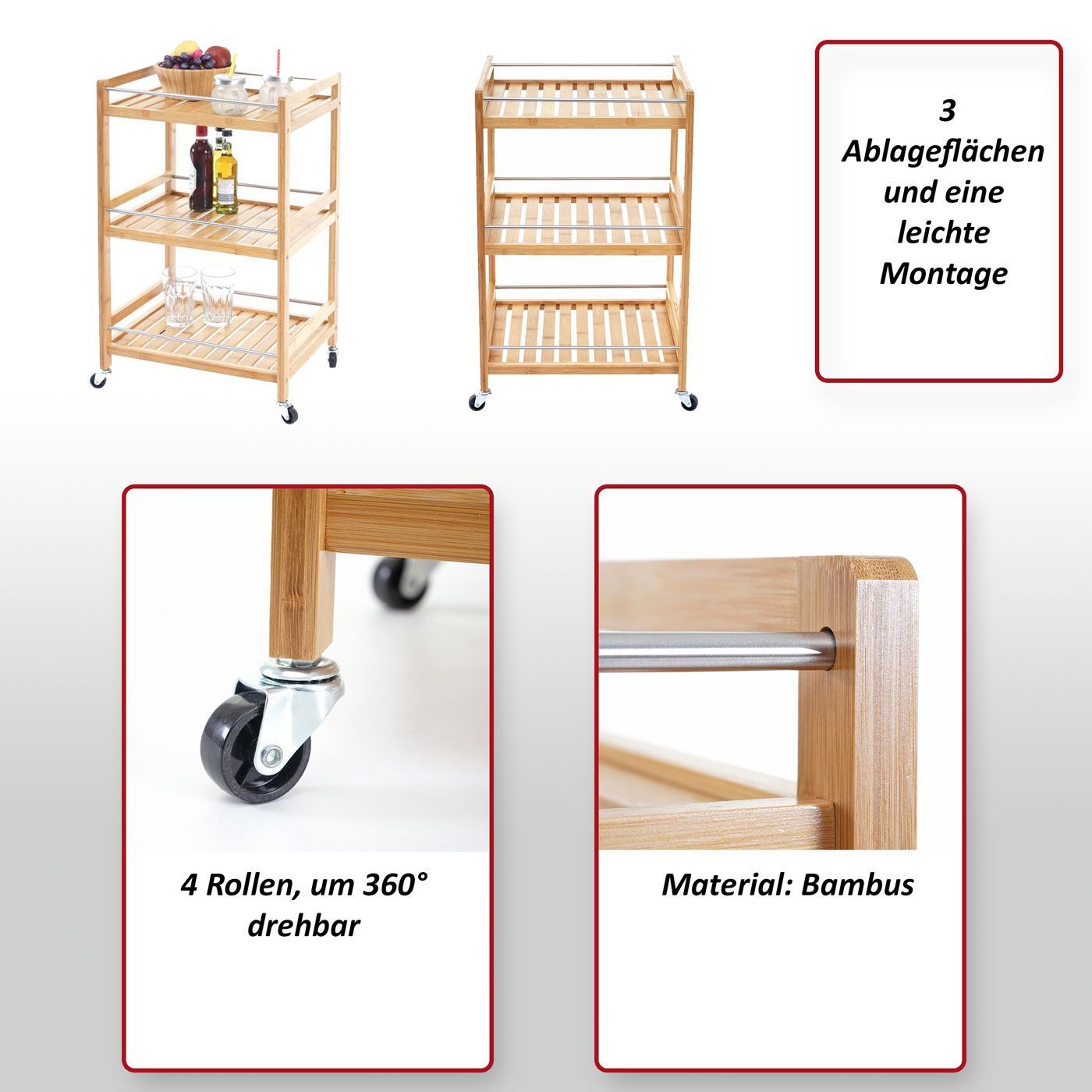 Mendler Servierwagen HWC-D91, Beistellwagen Küchenwagen Barwagen, Bambus 76x46x38cm