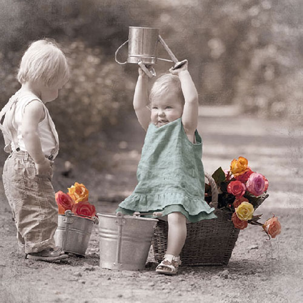 Servietten 20er Set - TISSUE mit Motiv - Kleinkinder mit Blumen - 33703 Gr. ca. 33x33