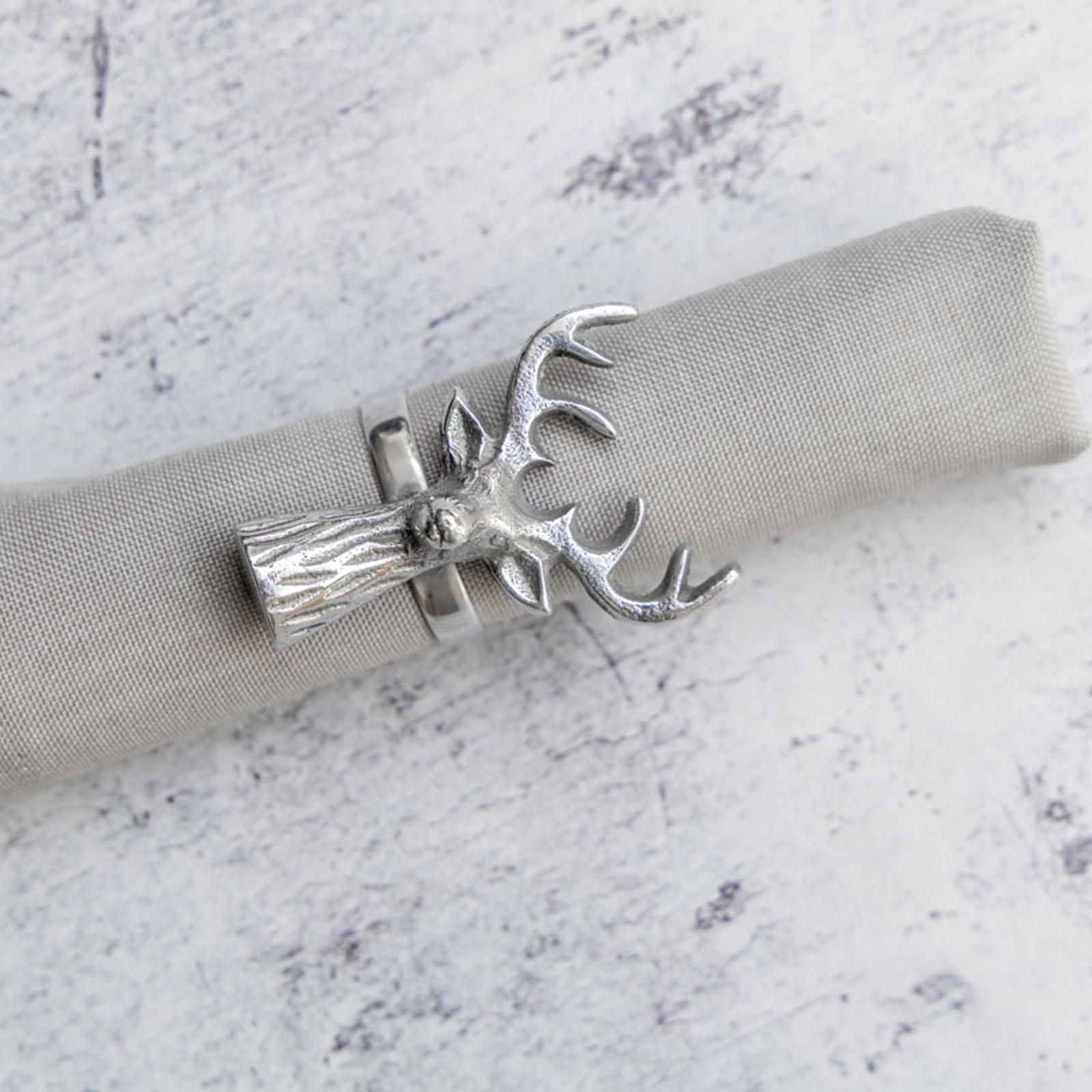 Serviettenringe Set 4 Stück Aluminium Serviettenhalter Tierform Hirsch Silber