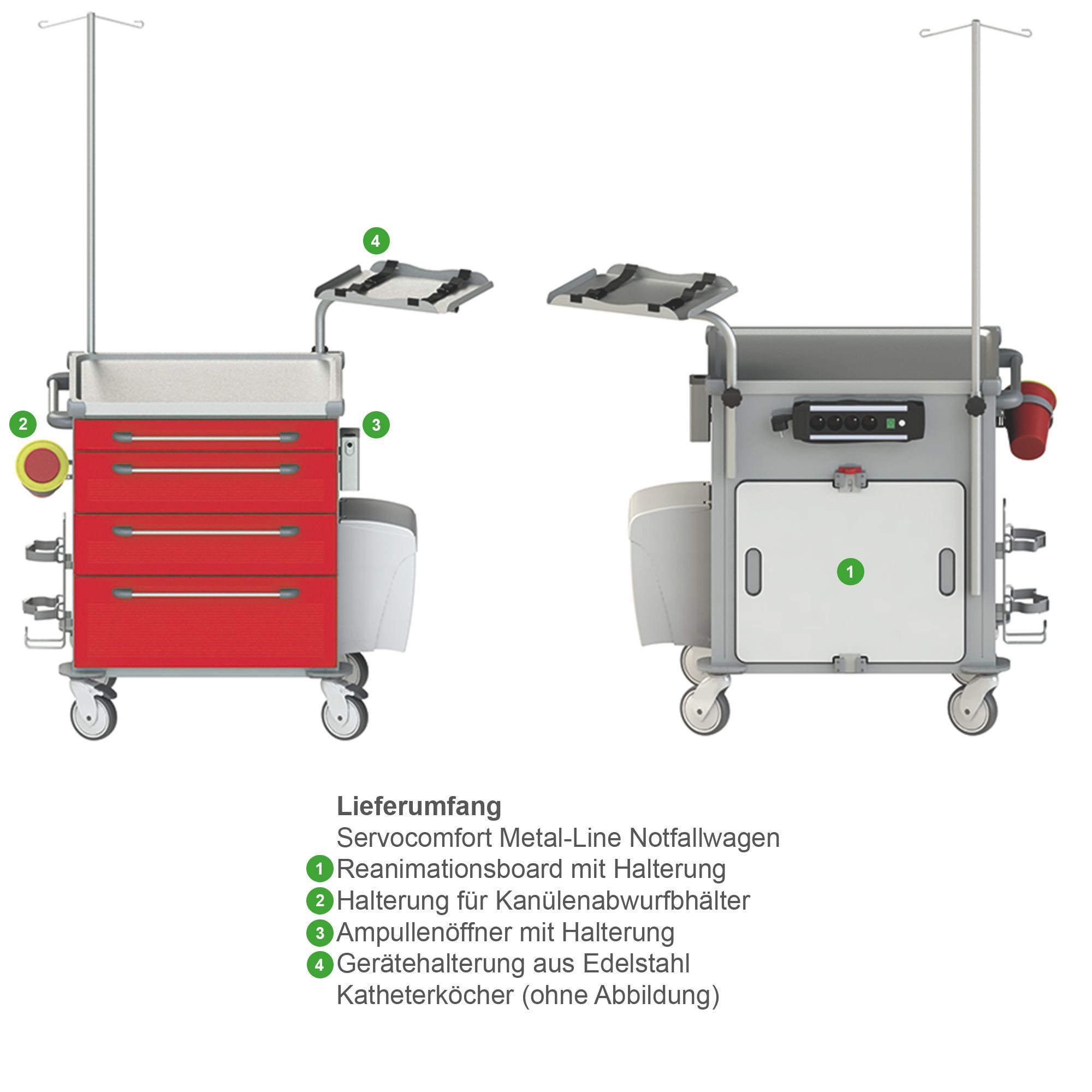 Servocomfort Metal-Line Notfallwagen mit vielseitigem Zubehör
