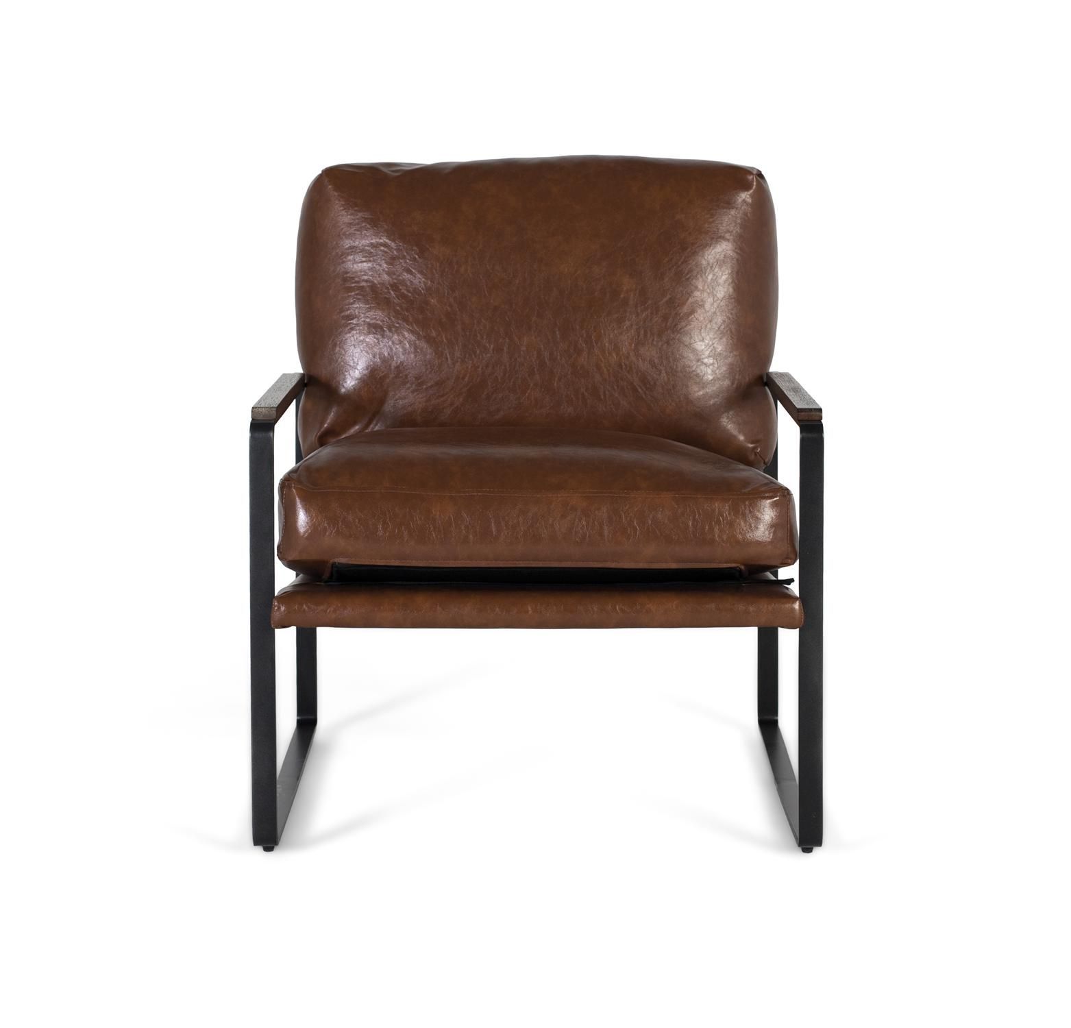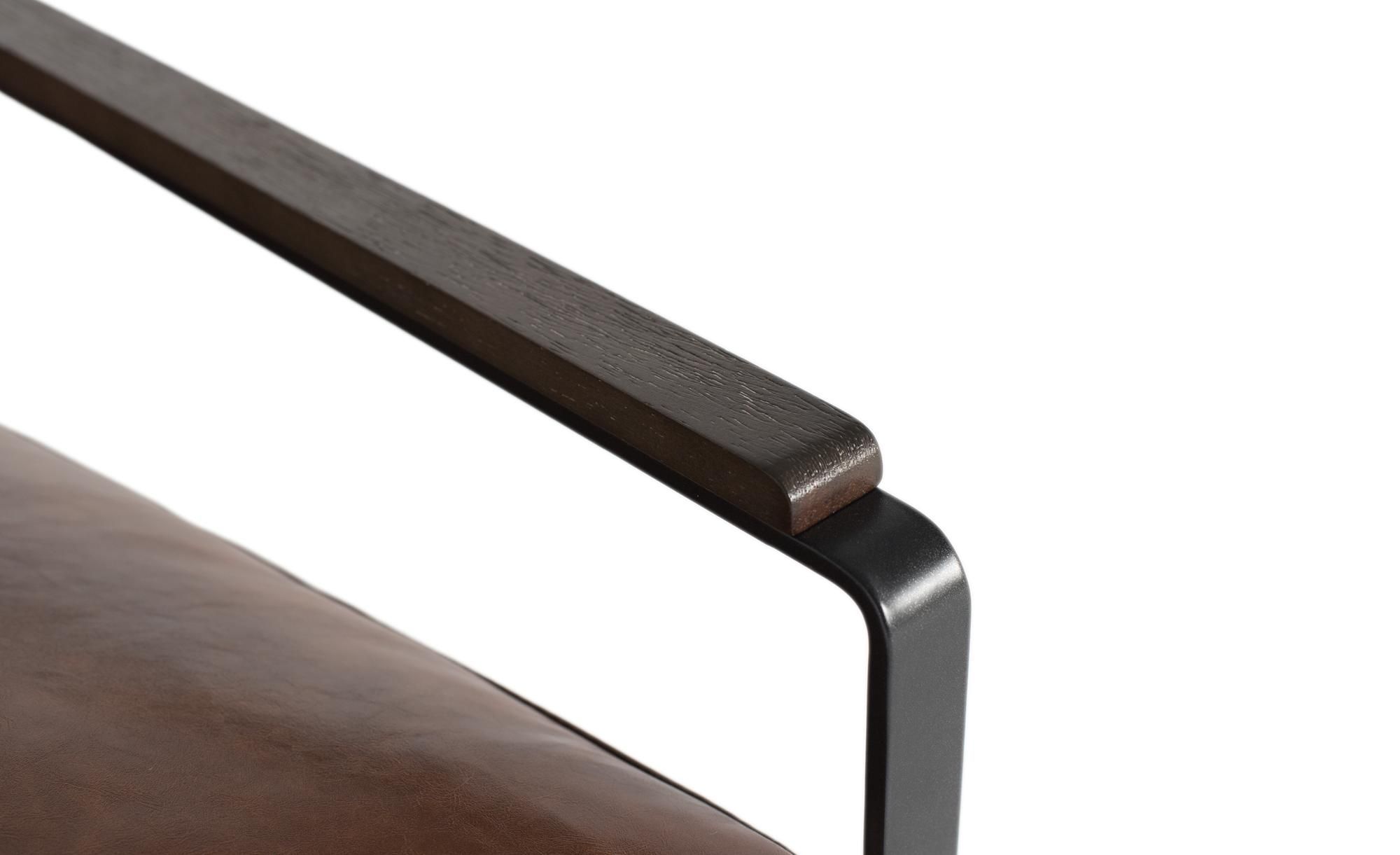 Sessel aus schwarzem Eisen und gealtertem braunem Kunstleder-2252