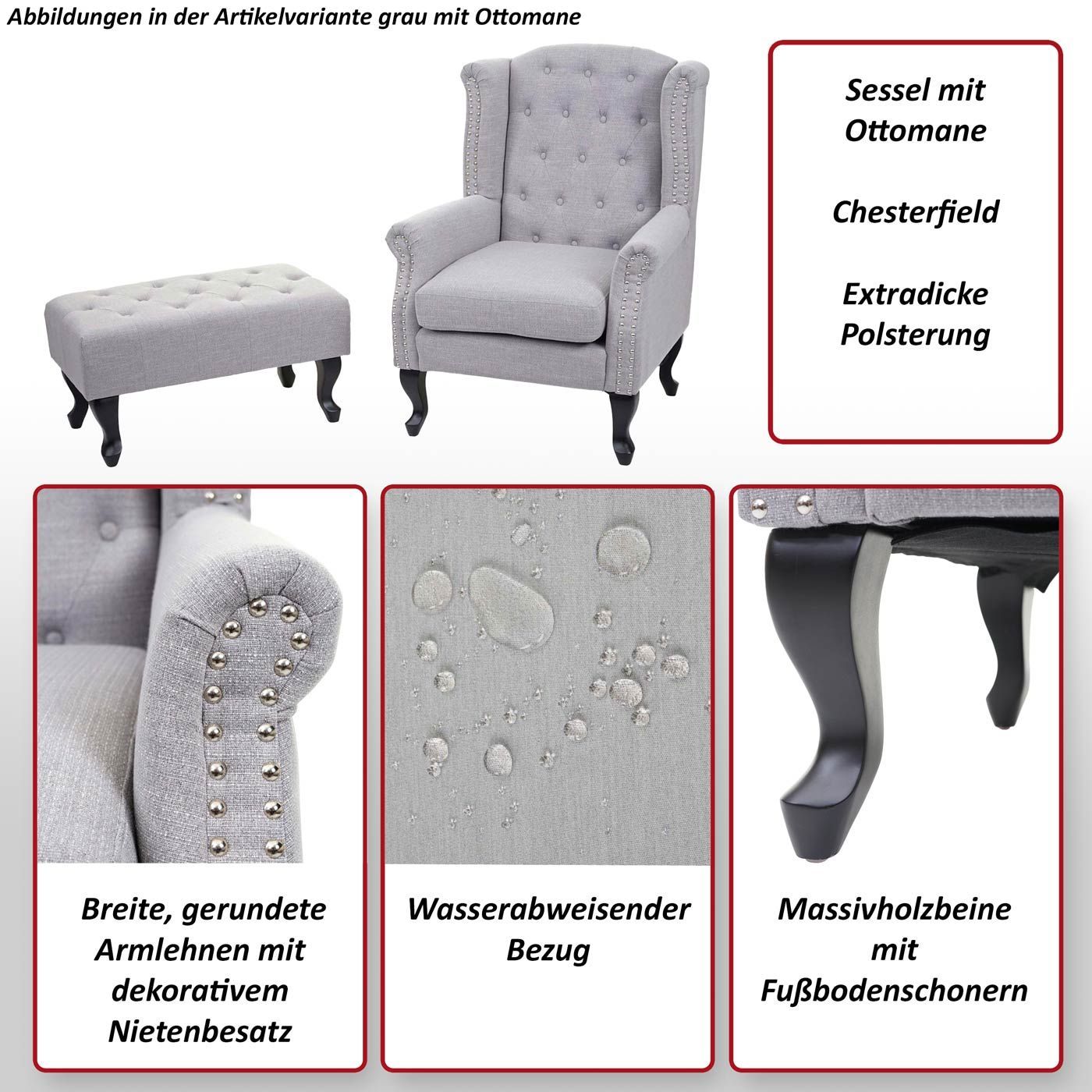 Mendler Sessel Chesterfield, Relaxsessel Clubsessel Ohrensessel, wasserabweisend