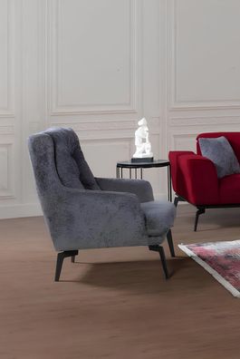 Sessel grau Moderne Einsitzer Designer Einsitzer Wohnzimmer Möbel Lehnstuhl Neu