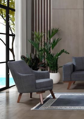 Grauer Polster Sessel Wohnzimmer Einsitzer Textil Sessel Lounge Möbel