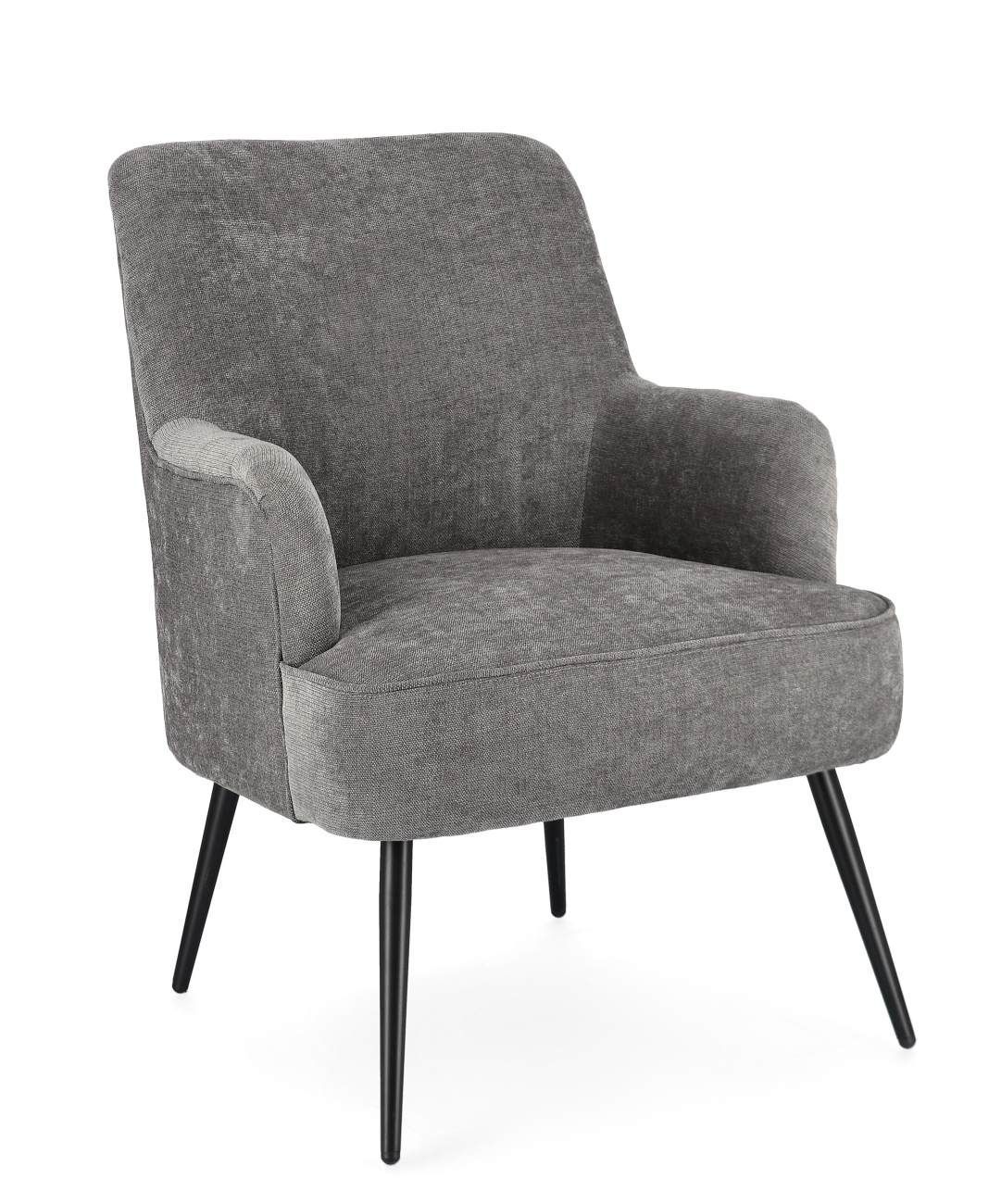 Sessel Ernestine aus Stoff, modernes Design, Grau, stabiles Metallgestell,