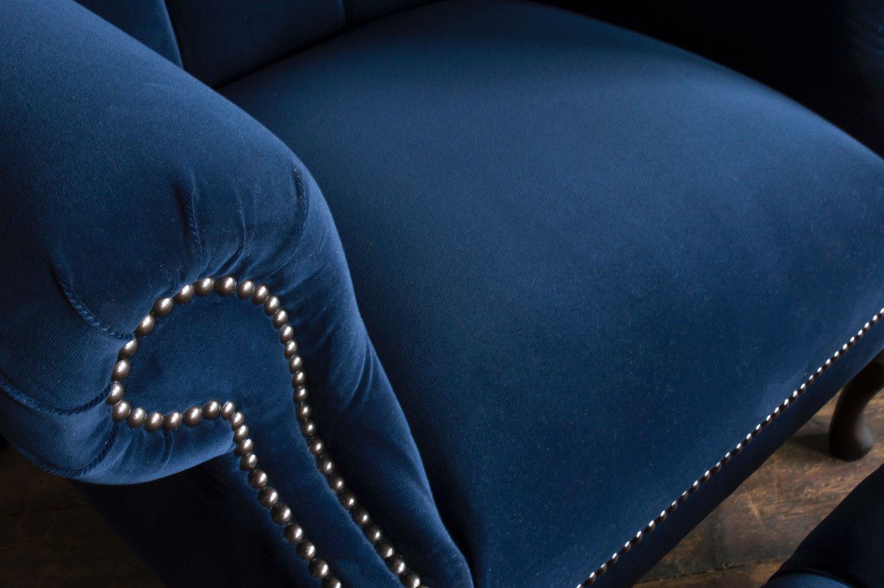 Sessel Fernseh Polster Couch Chesterfield Textil Neu Ohrensessel + Hocker - 357